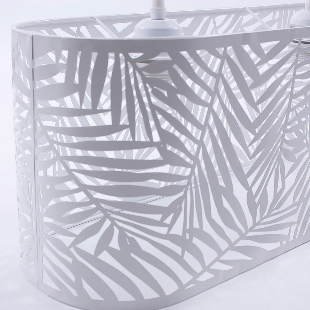 Lampadario ovale a tre luci in metallo bianco traforato con effetto foglie di felce. Design moderno. Ideale per cucina, soggiorno o in ogni ambiente di casa.