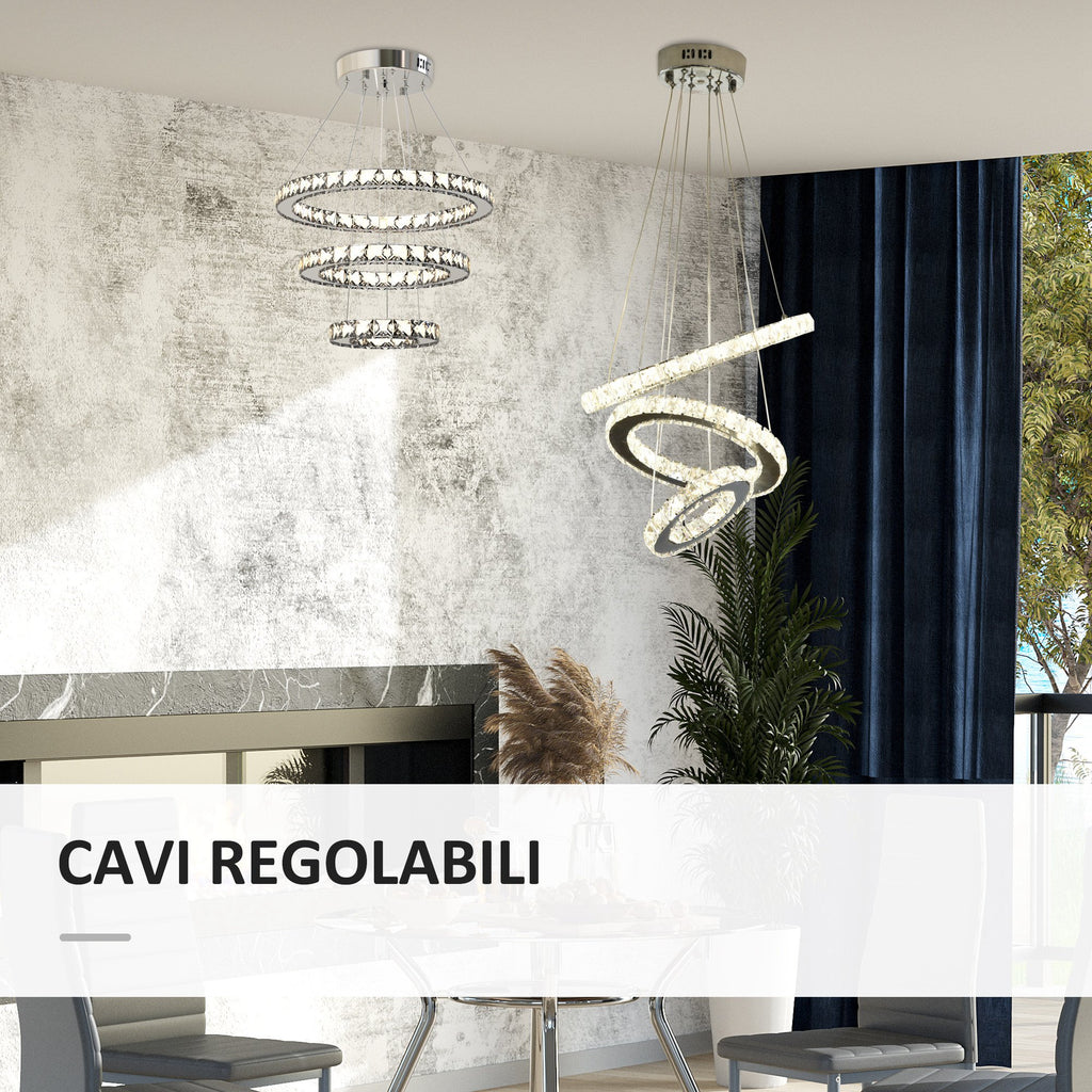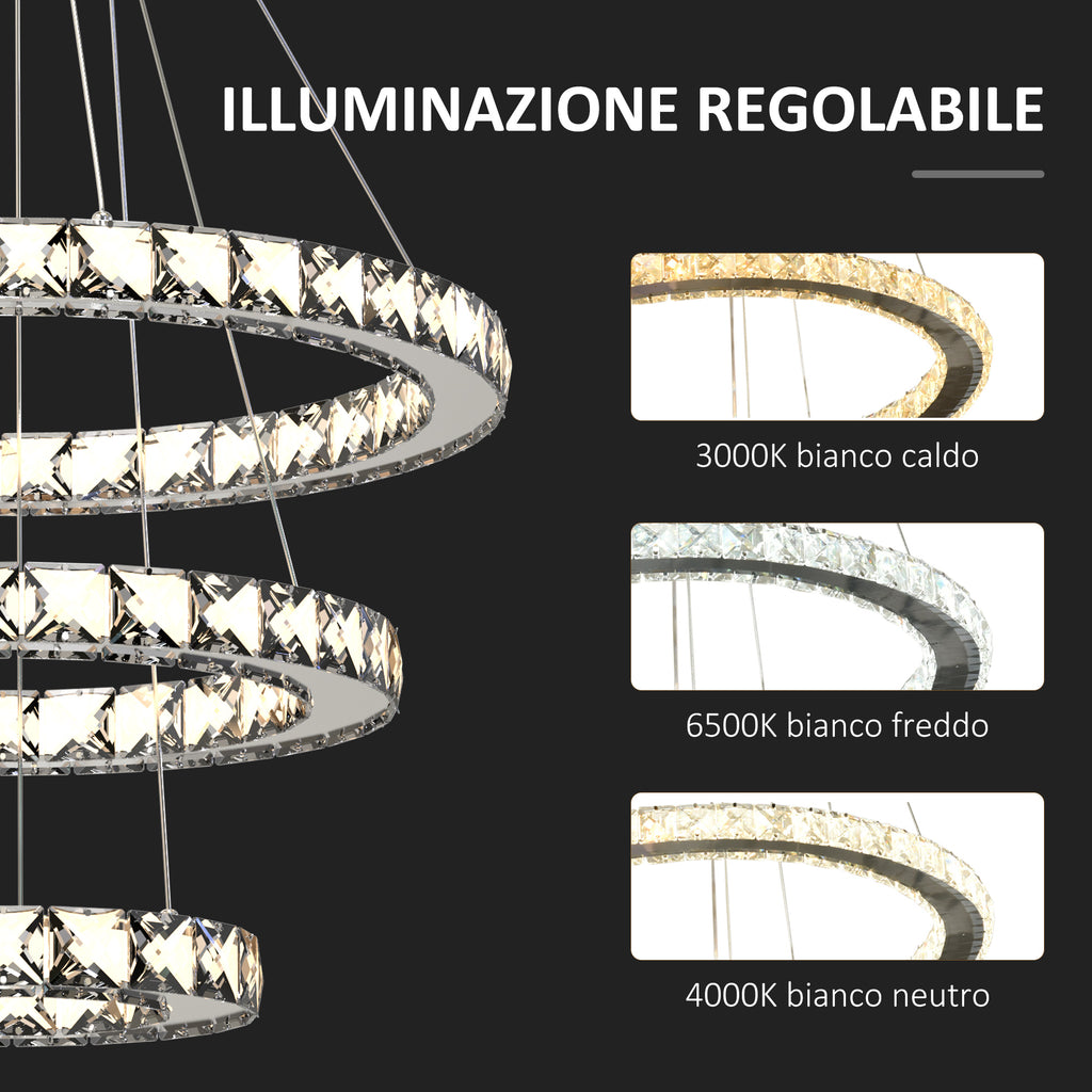 - LED-Kronleuchter mit 3 Ringen, ausgestattet mit Kristallen und Fernbedienung inklusive