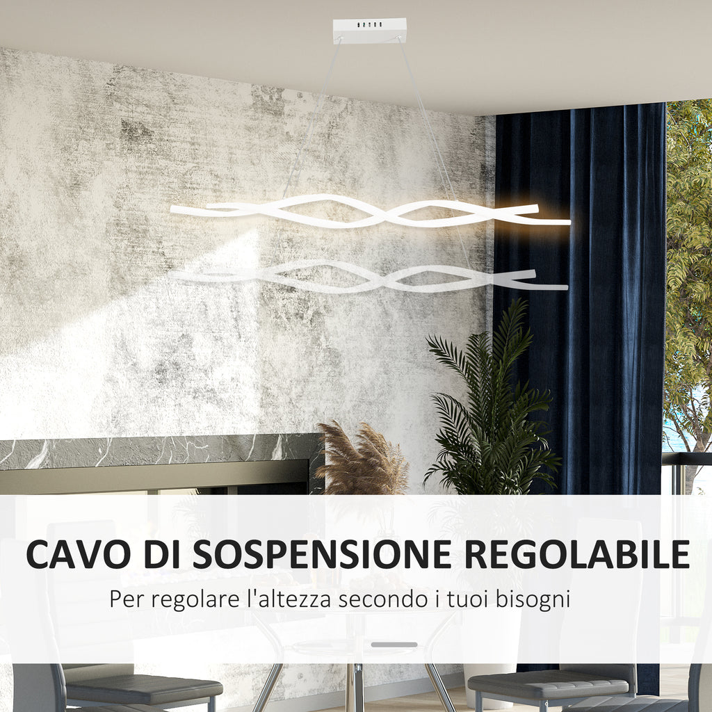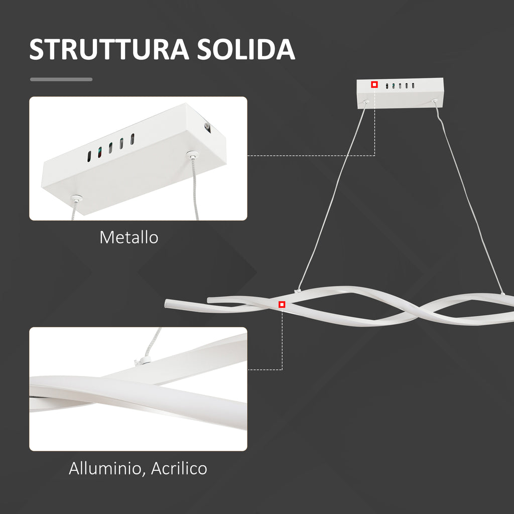 Der moderne wellenförmige LED-Kronleuchter erhellt den Stil in Ihrem Zuhause. Seine Form erinnert an die DNA-Helix, ein originelles und elegantes Design, das durch eine 6500k-Beleuchtung vervollständigt wird. Mit dem Aufhängekabel können Sie die Höhe verstellen, um den Kronleuchter an die Umgebung anzupassen, in der er sich befindet. Stabile und widerstandsfähige Deckenbefestigung, um eine sichere Befestigung der Pendelleuchte zu gewährleisten.