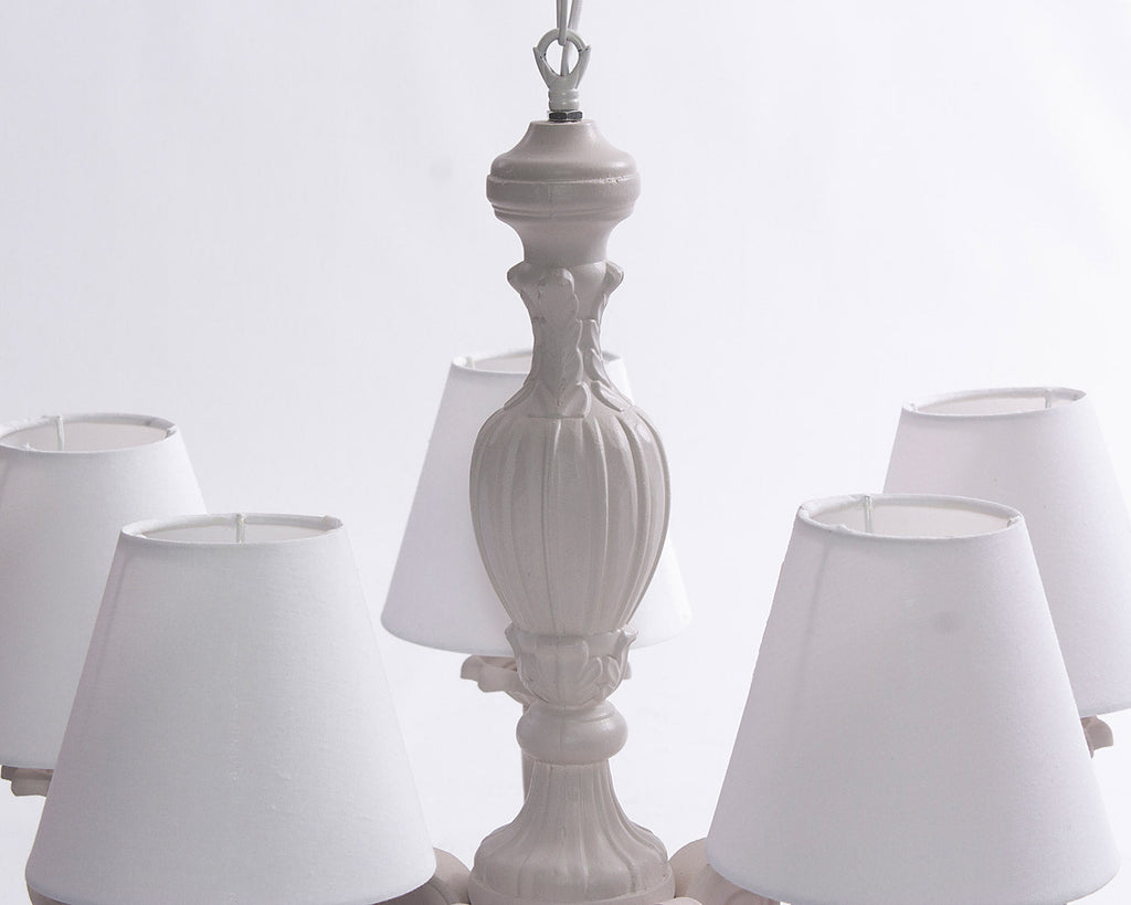 Lampada a sospensione in stile shabby, Realizzato con 5 bracci e paralumi smontabili. Lampadine non incluse.