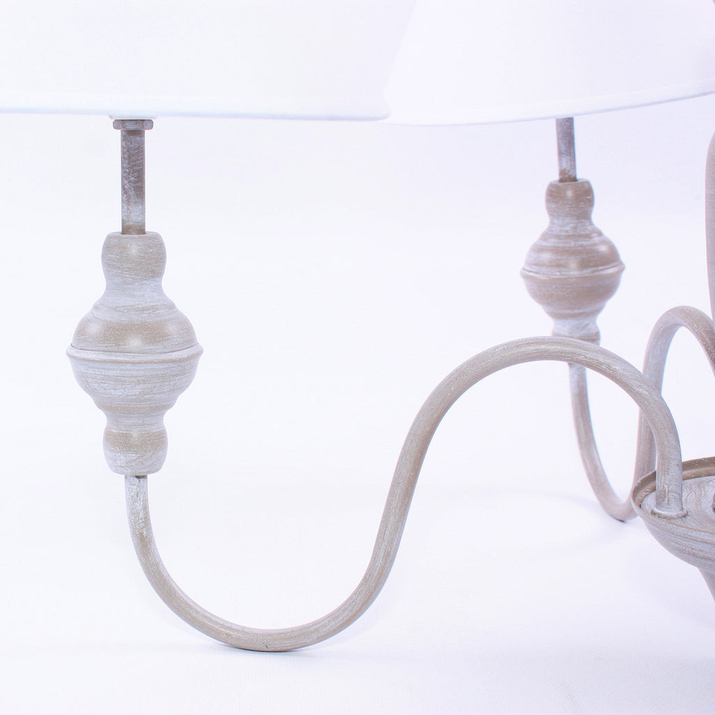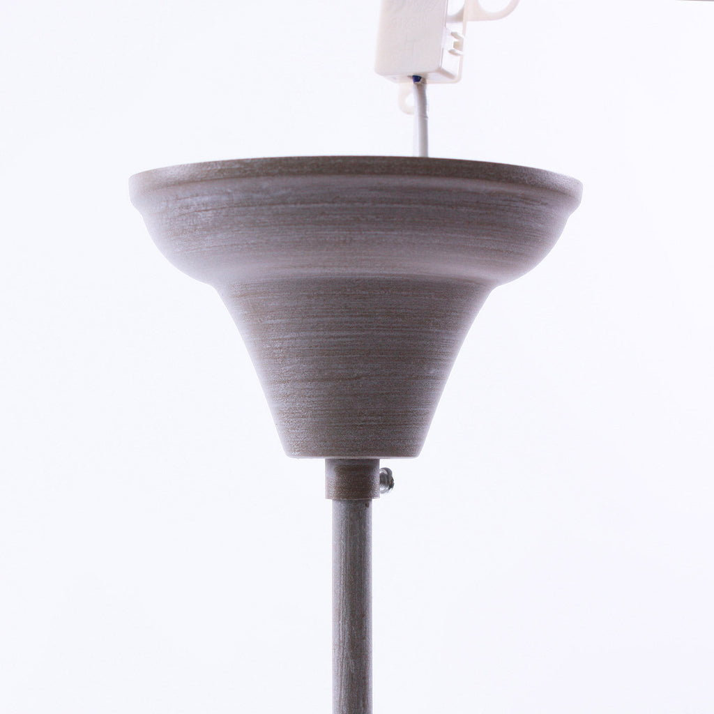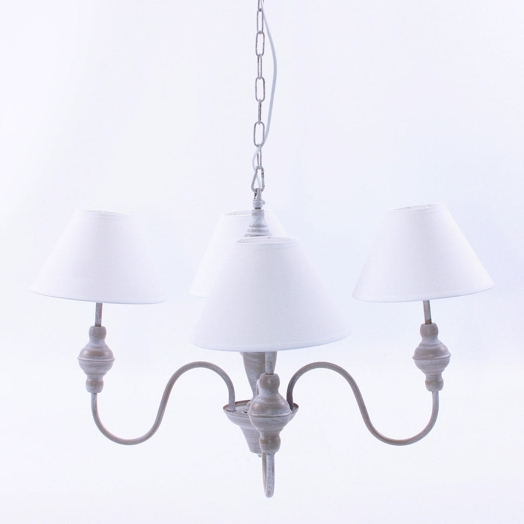 Lampada a sospensione in stile shabby. 4 bracci in metallo grigio. Paralumi smontabili. Lampadine non incluse.