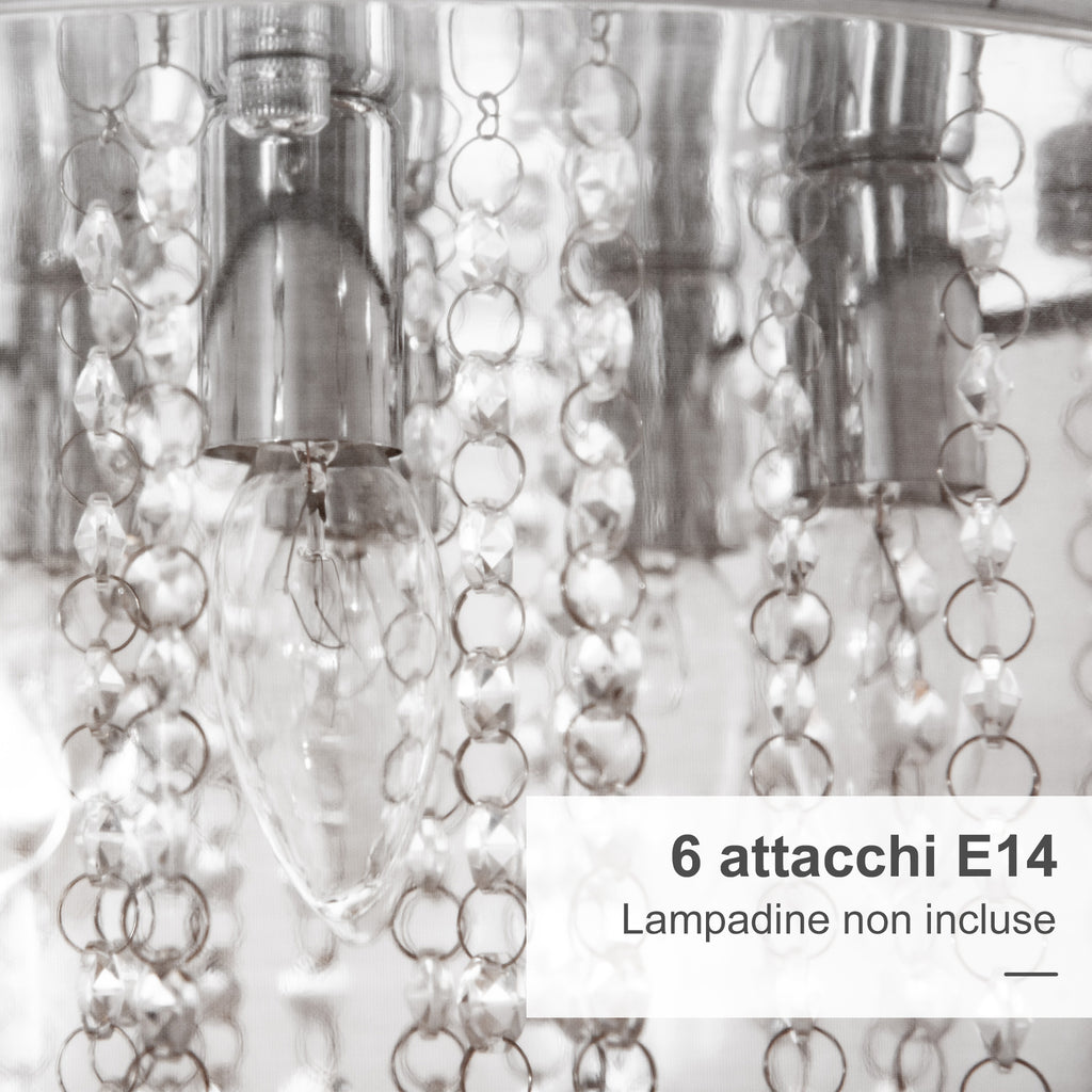 Moderner Kronleuchter mit Tropfen Ø40x33 cm E14 40W Lampenschirm aus silbernem Stoff