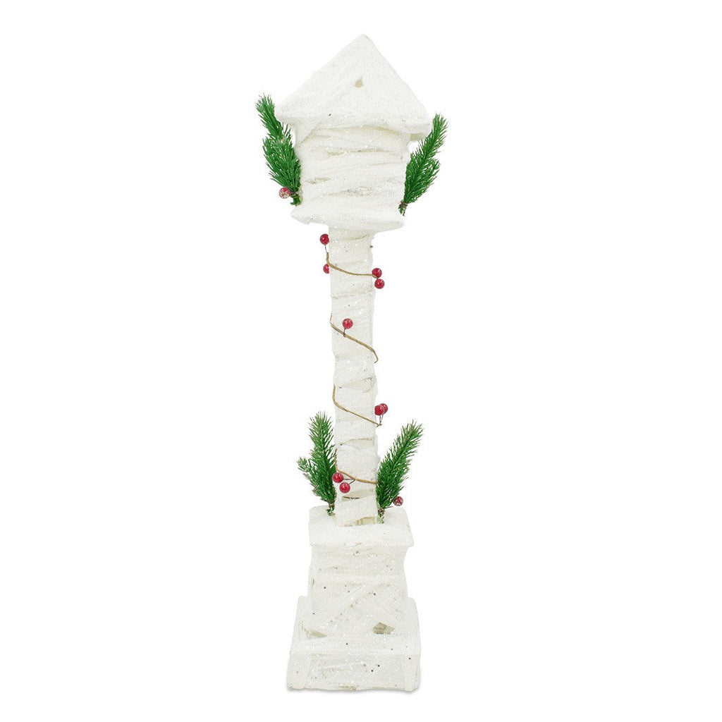 Weihnachtslaterne 60H cm mit weißer Verflechtung mit Glitzer und Mini-Glühwürmchen