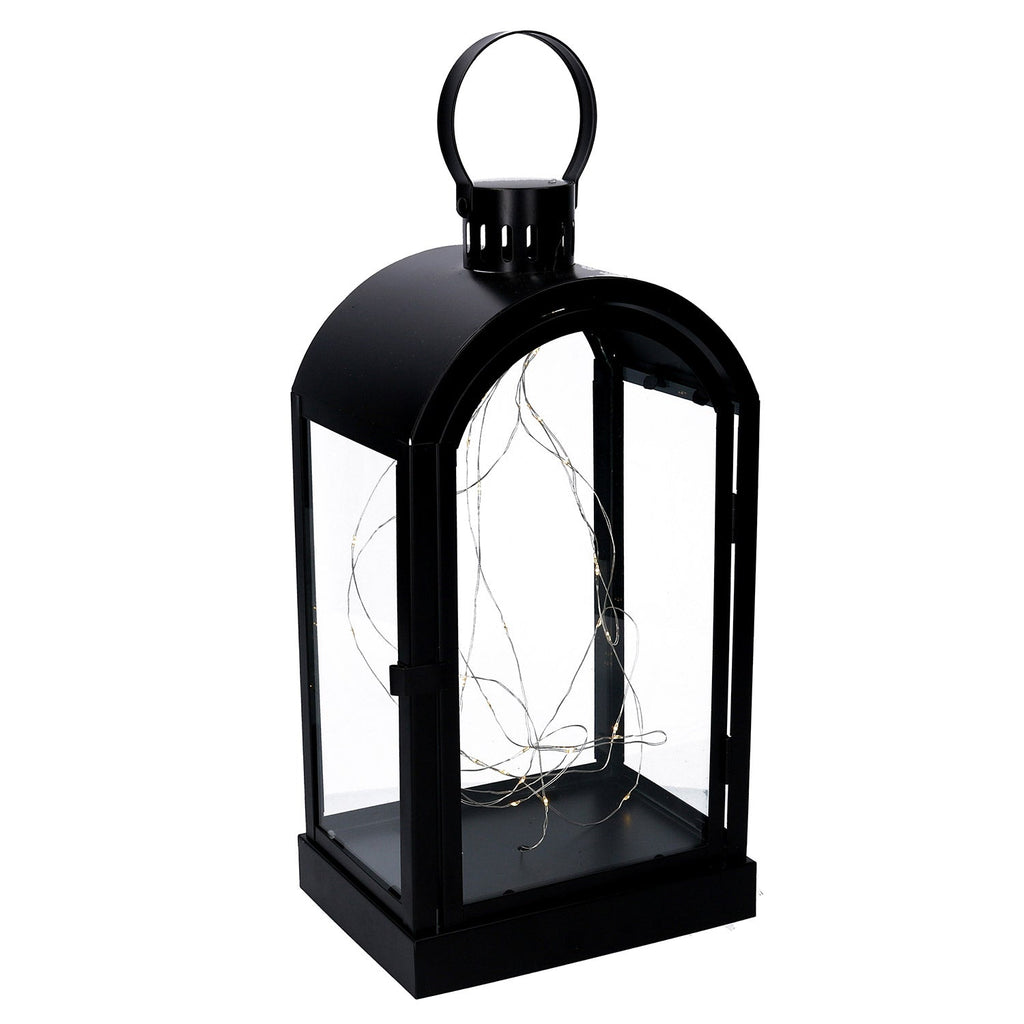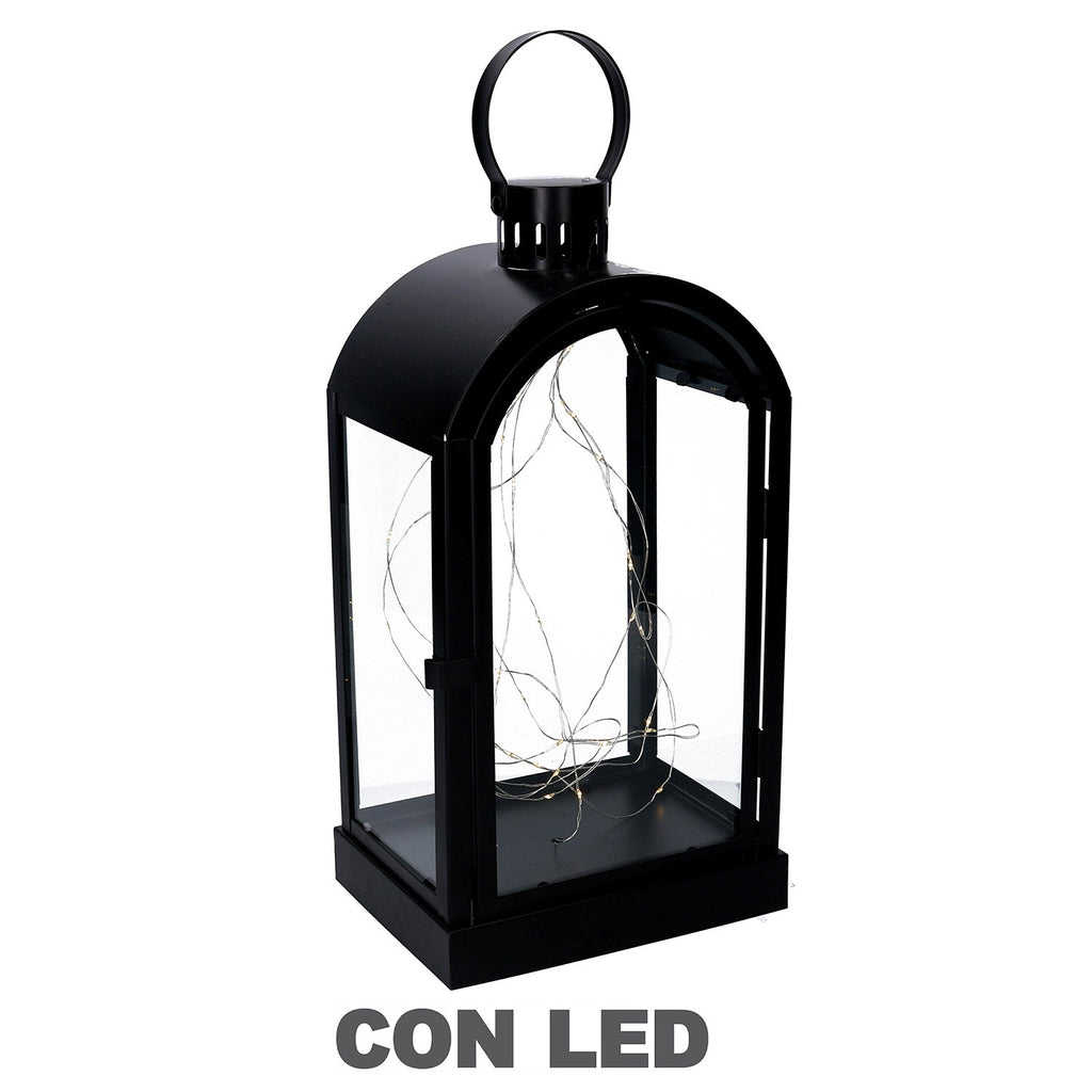 Laterne mit Led aus schwarzem Metall cm 20,2x15,2xh38,5/46