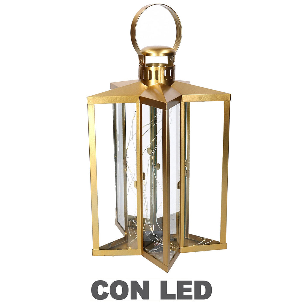 - LED-Laterne aus goldenem Sternmetall cm 27,5x27,5xh42/48