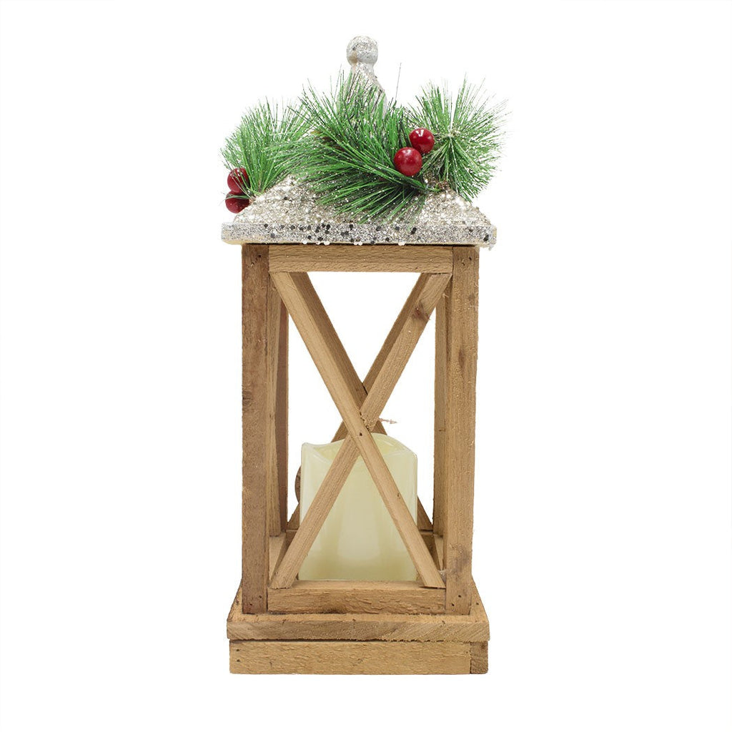 Laterne mit Weihnachtslicht aus Holz mit LED-Licht und Glitzer