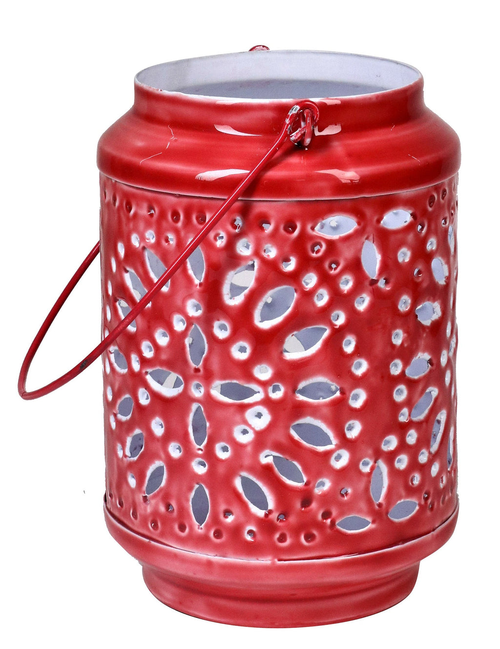 Gartenlaterne Ø13,5x21 cm aus rot emailliertem Metall
