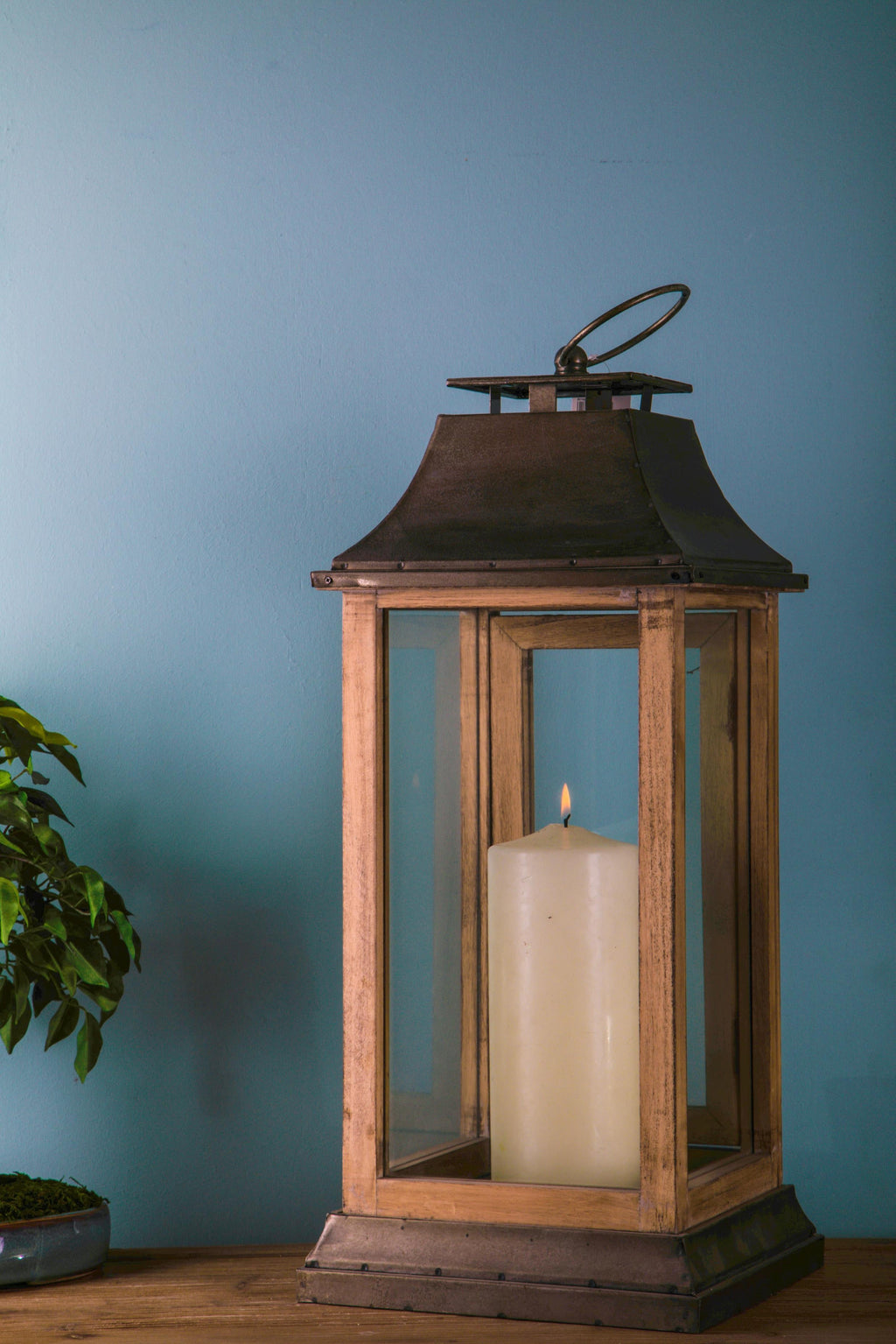 Lanterna In Metallo Con Manico. Altezza 68 Cm