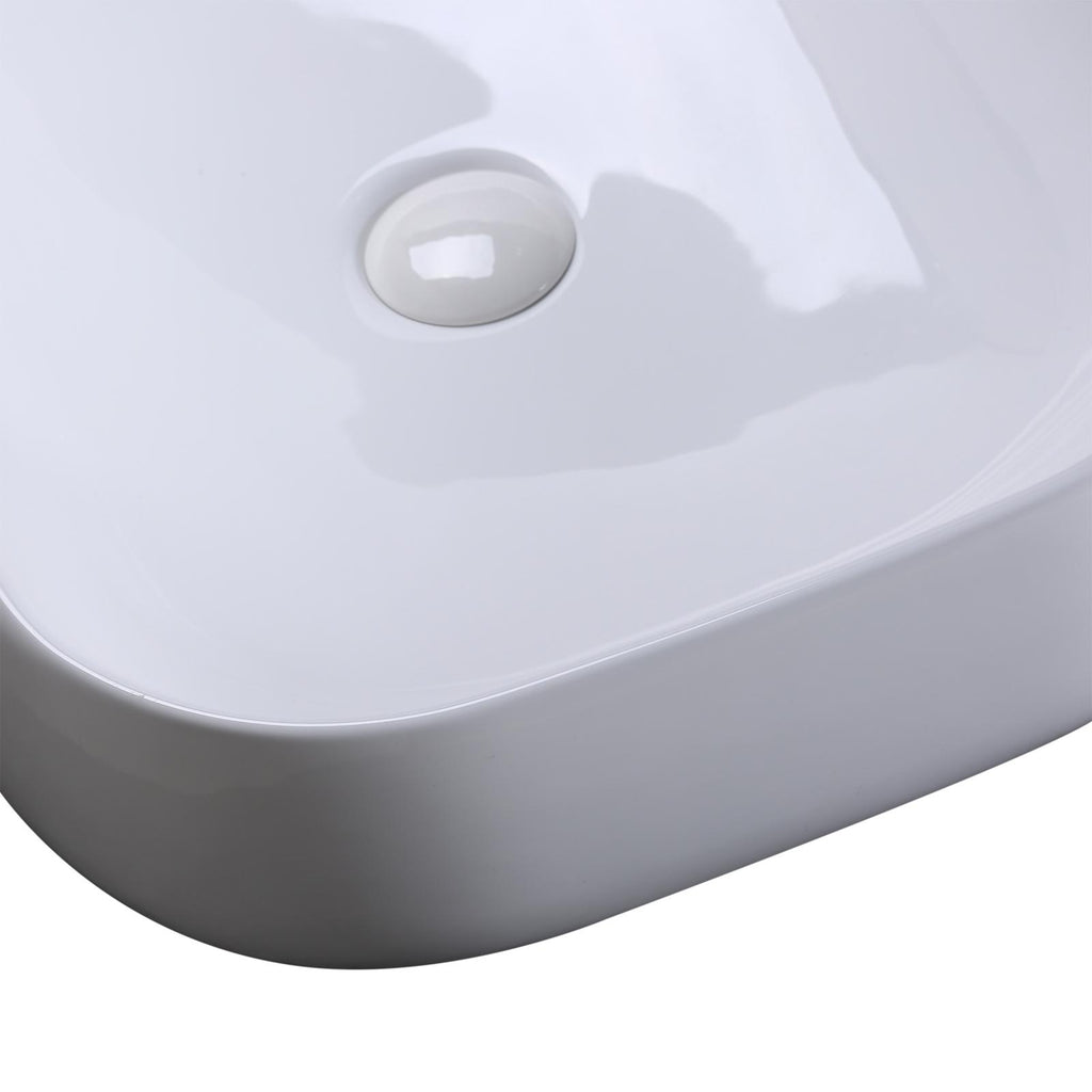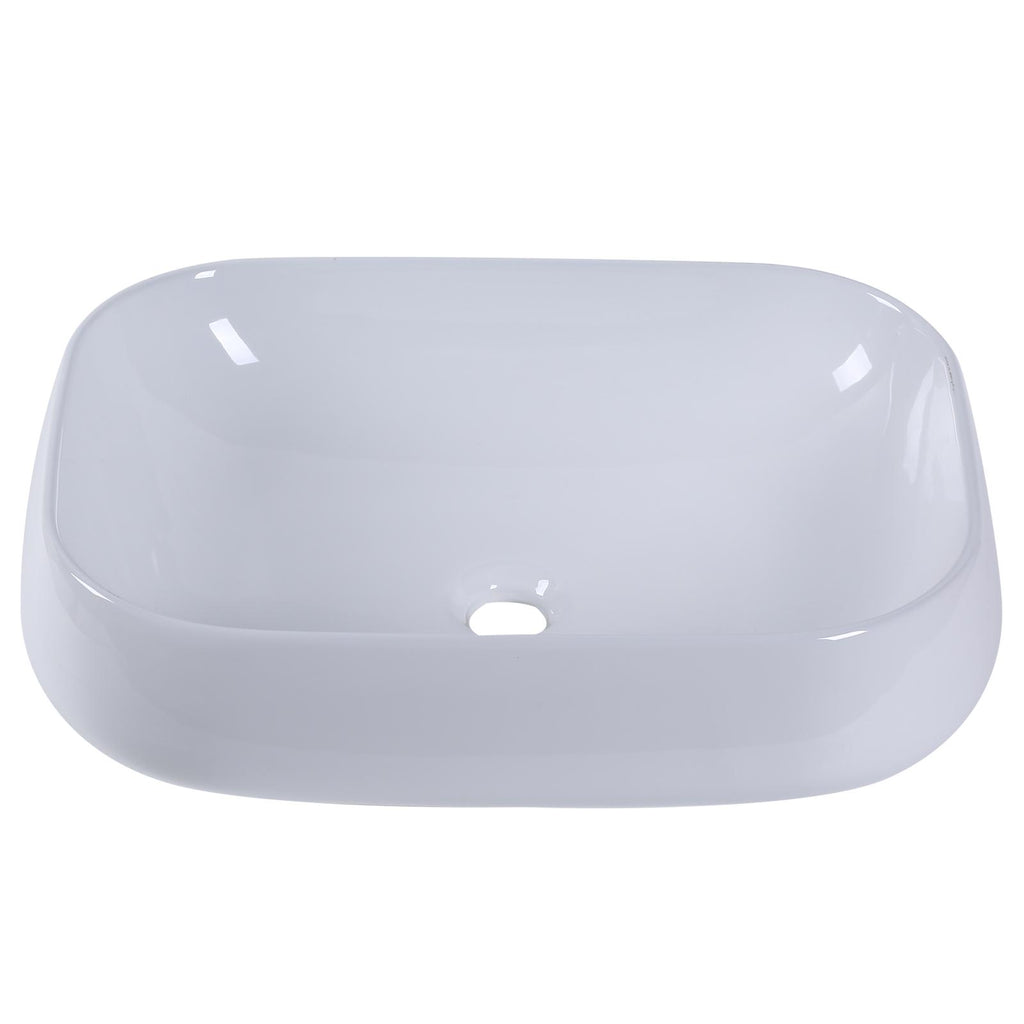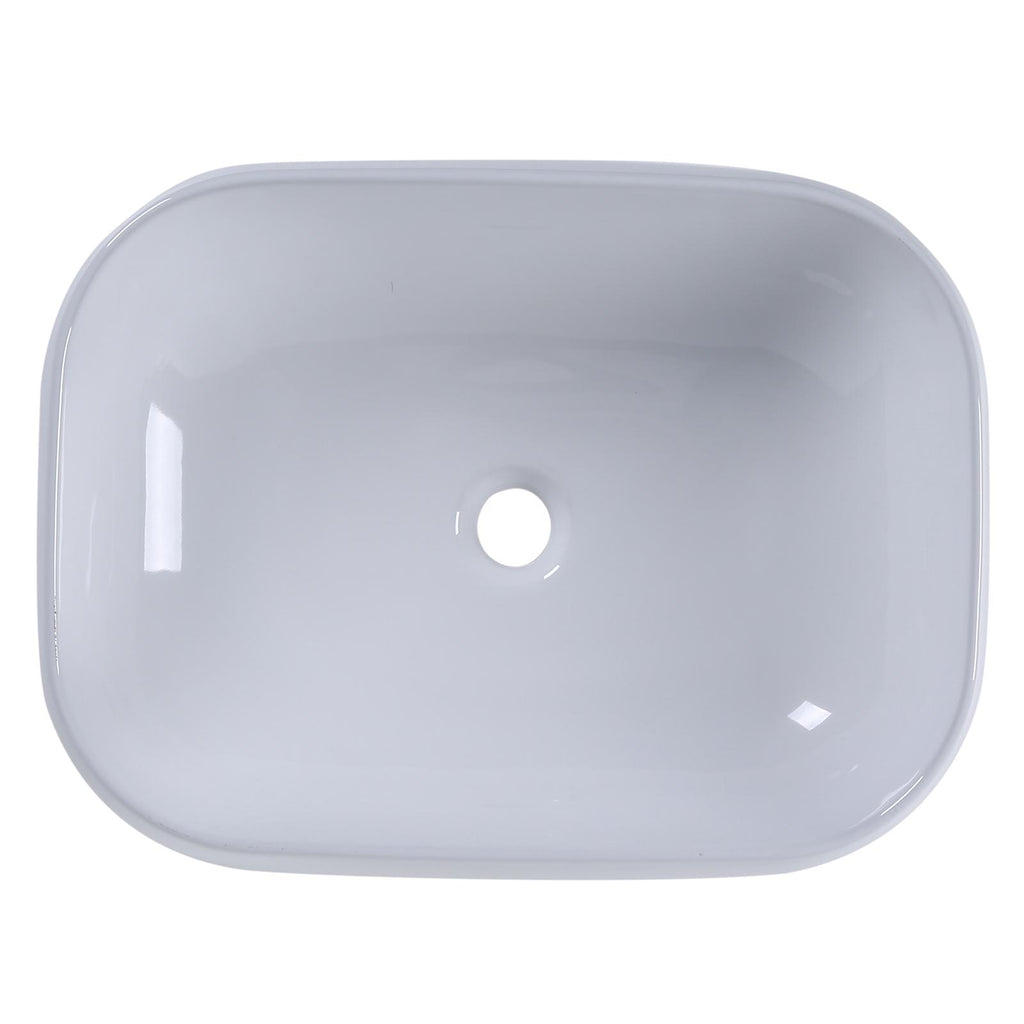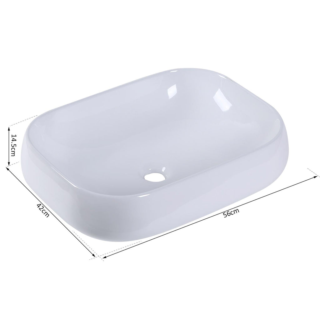 Rechteckiges Aufsatzwaschbecken aus weiß glasierter Keramik 56x42x14,5 cm