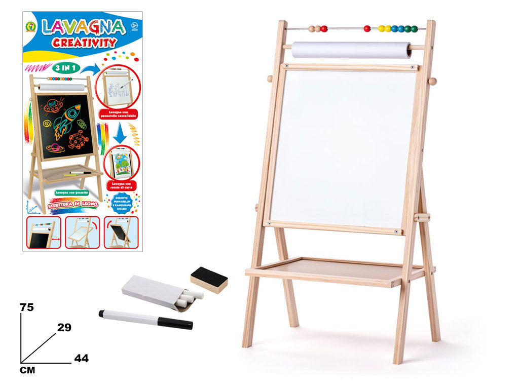 Lavagna 3 in 1 per Bimbi in Legno 75 cm Creativity