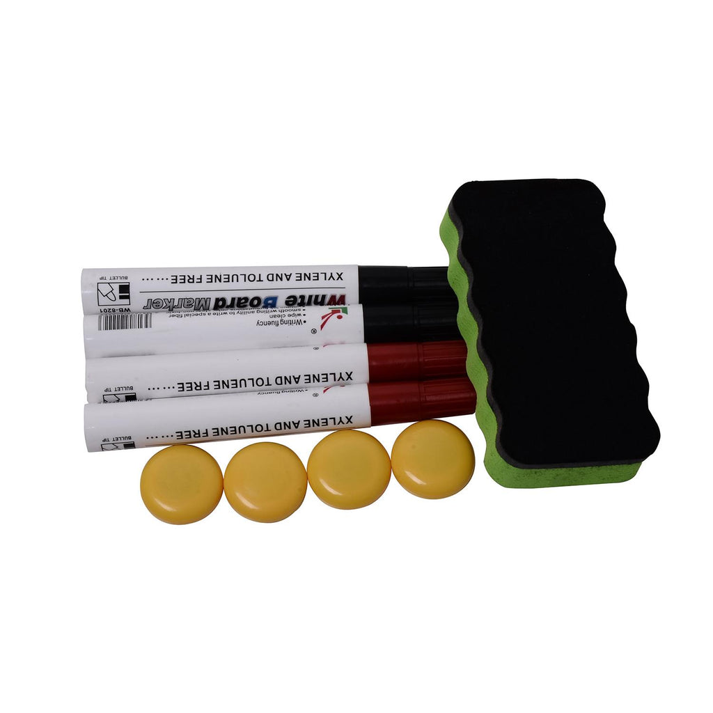 - Inklusive 4 Markern (2 rot + 2 schwarz), einem Radiergummi und 4 Magneten