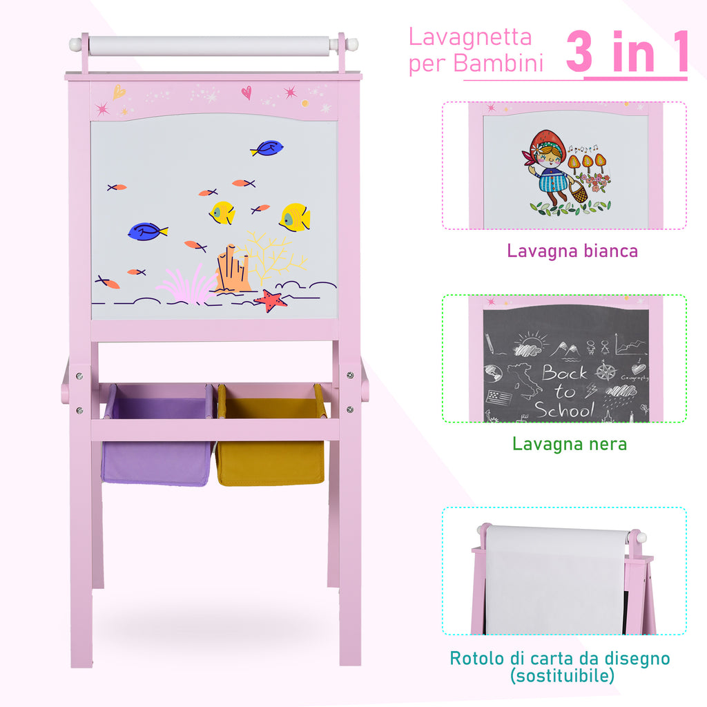 3-in-1-Kindertafel mit rosa Holzstaffelei