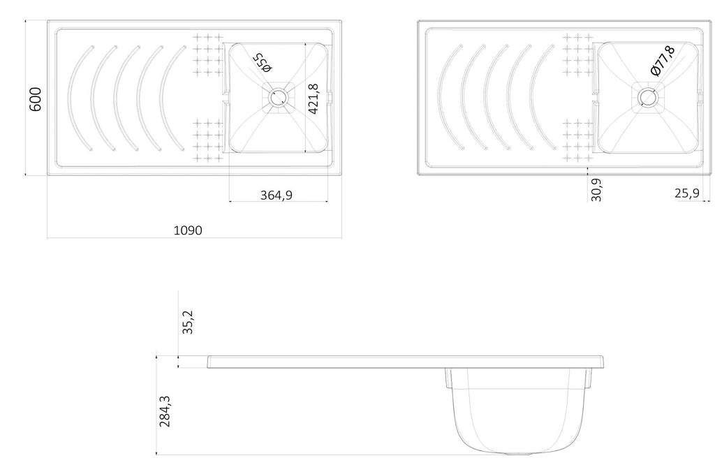 Komplett mit Harzwaschbrett und selbstreinigendem Siphon mit Überlaufmechanismus.