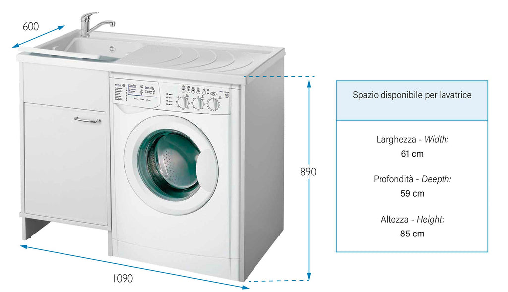 PVC-Waschwannen- und Waschmaschinenabdeckung 109 x 60 x 85 cm mit weißem Forlani Tidy-Waschbrett rechts