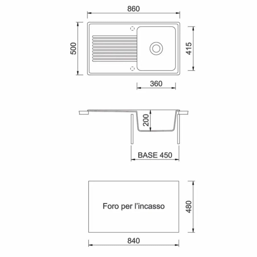 - Misure vasca 415x360x200 mm