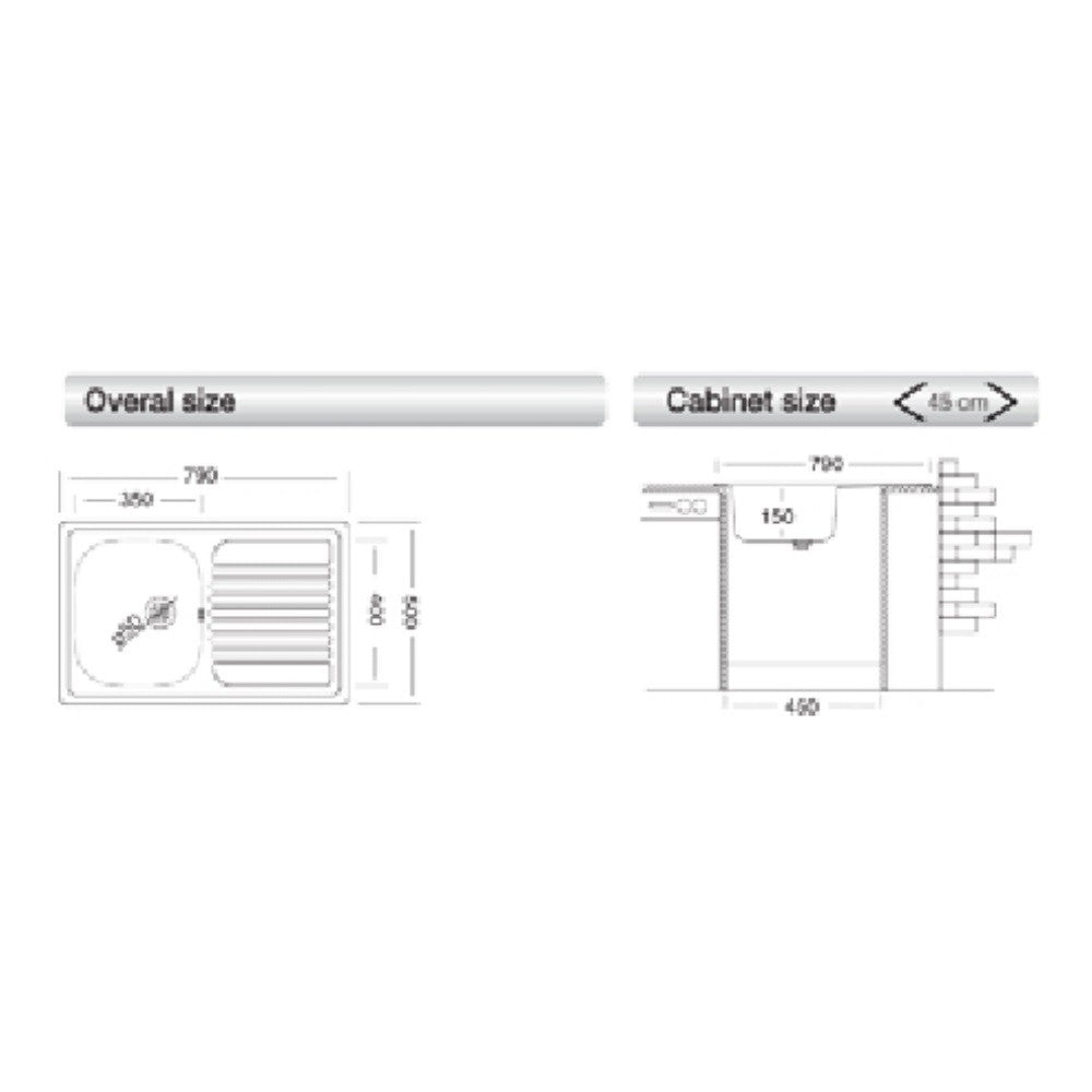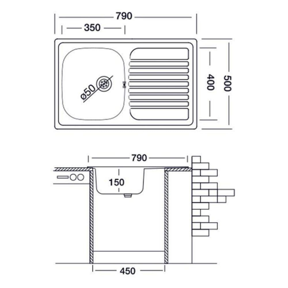 Lavello 79x50 cm Classic sinistro.