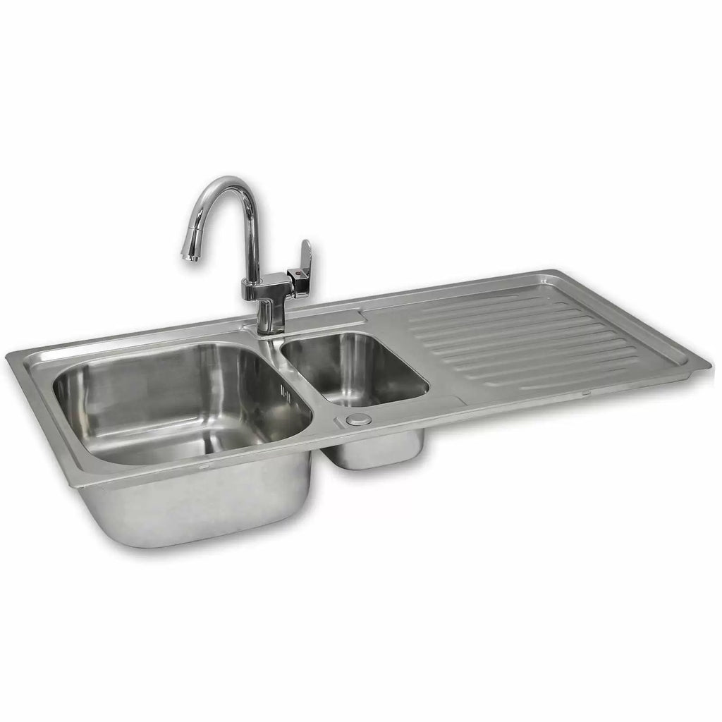 Lavello Cucina 1 Vasca e Mezza 105x50 cm in Acciaio Inossidabile con Rubinetto Confetti