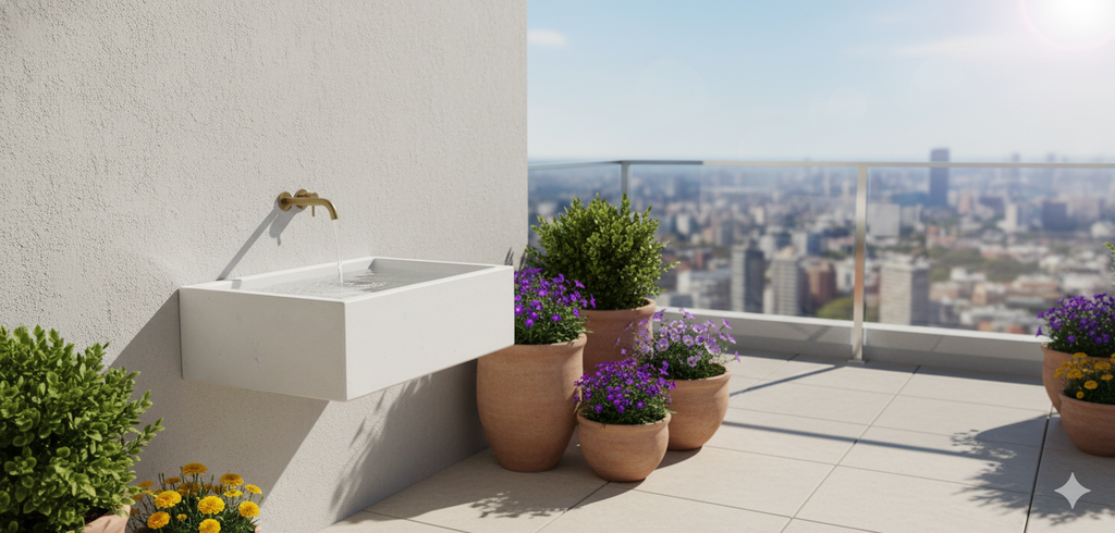 Lavello da Giardino Senza Rubinetto in Cemento Granulato di Marmo Madrid Bianco