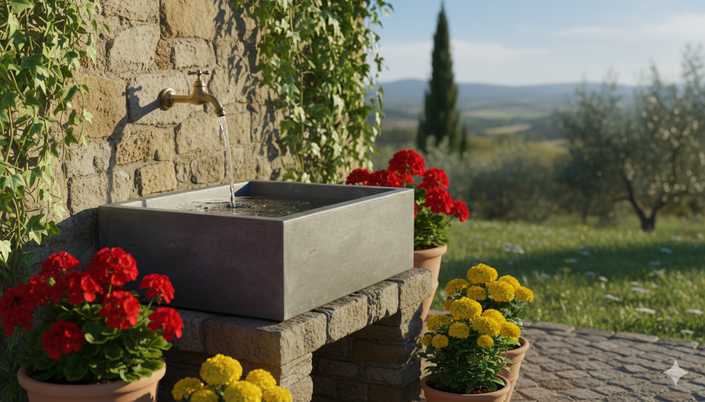 Lavello da Giardino Senza Rubinetto in Cemento Granulato di Marmo Madrid Nero Antracite