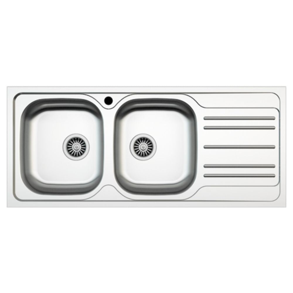 Lavello incasso cucina acciaio116x50 cm due vasche e gocciolatoio destro.