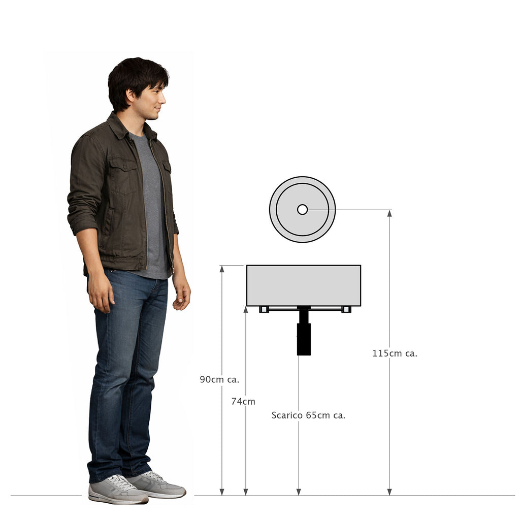 Lavello Rettangolare 45x35 cm con Rosone Installazione a Muro in Cemento Madrid Antracite