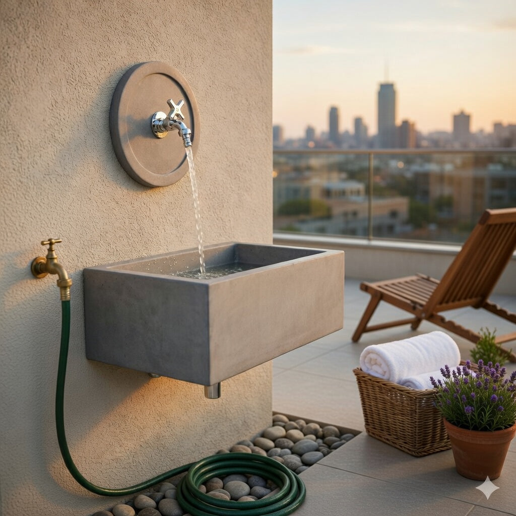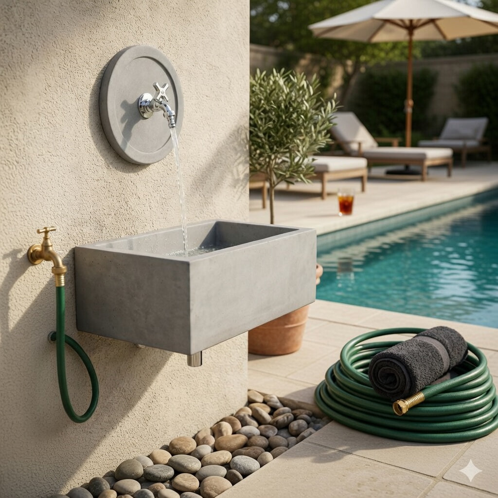 Lavello Rettangolare 45x35 cm con Rosone Installazione a Muro in Cemento Madrid Grigio