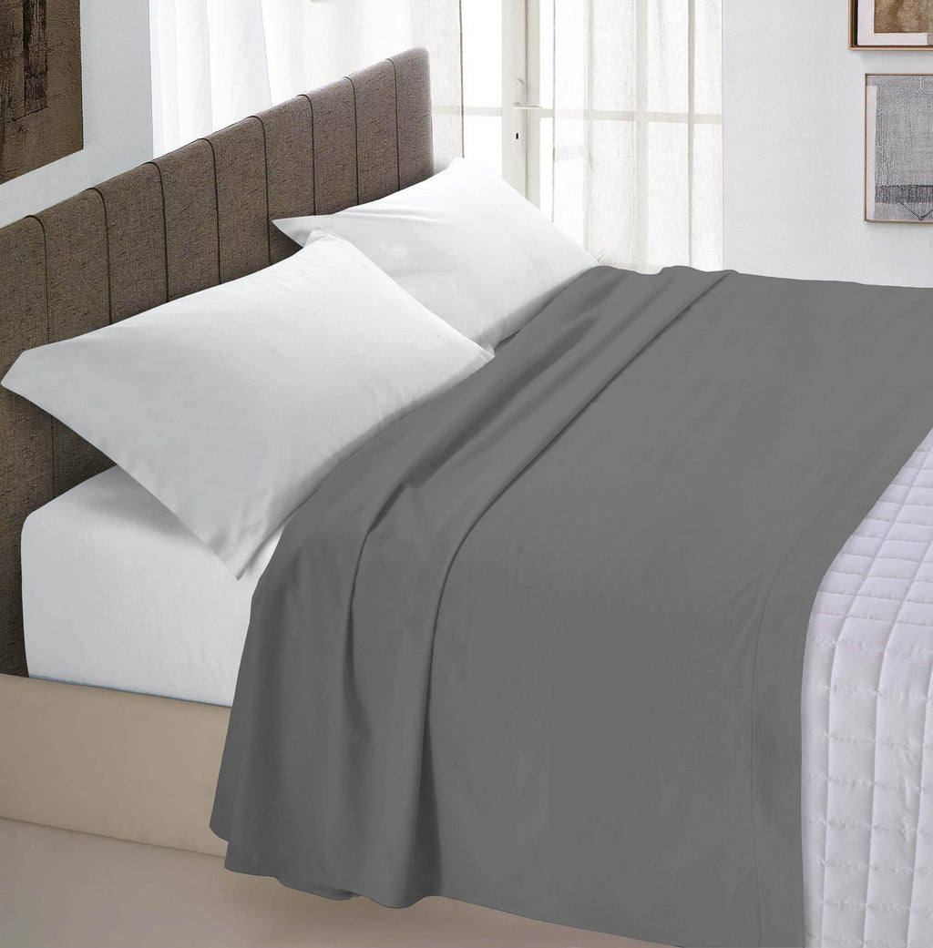 Einfarbiges Deckblatt . Dieses einfarbige Laken wurde vollständig in Italien entworfen, montiert und genäht und besteht aus Baumwolle mit präziser Verarbeitung und Veredelung, die das Bügeln erleichtert. All diese Eigenschaften machen diese Platten zu einem Produkt, das wegen seiner Eleganz und Schlichtheit sehr gefragt ist. Die Farben wurden getestet, um langem Waschen zu widerstehen, während die Farben leuchtend bleiben.