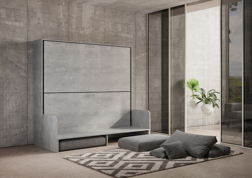 Letti Singoli a Scomparsa Salvaspazio con Sofà Kando H190,8 Cemento Grigio