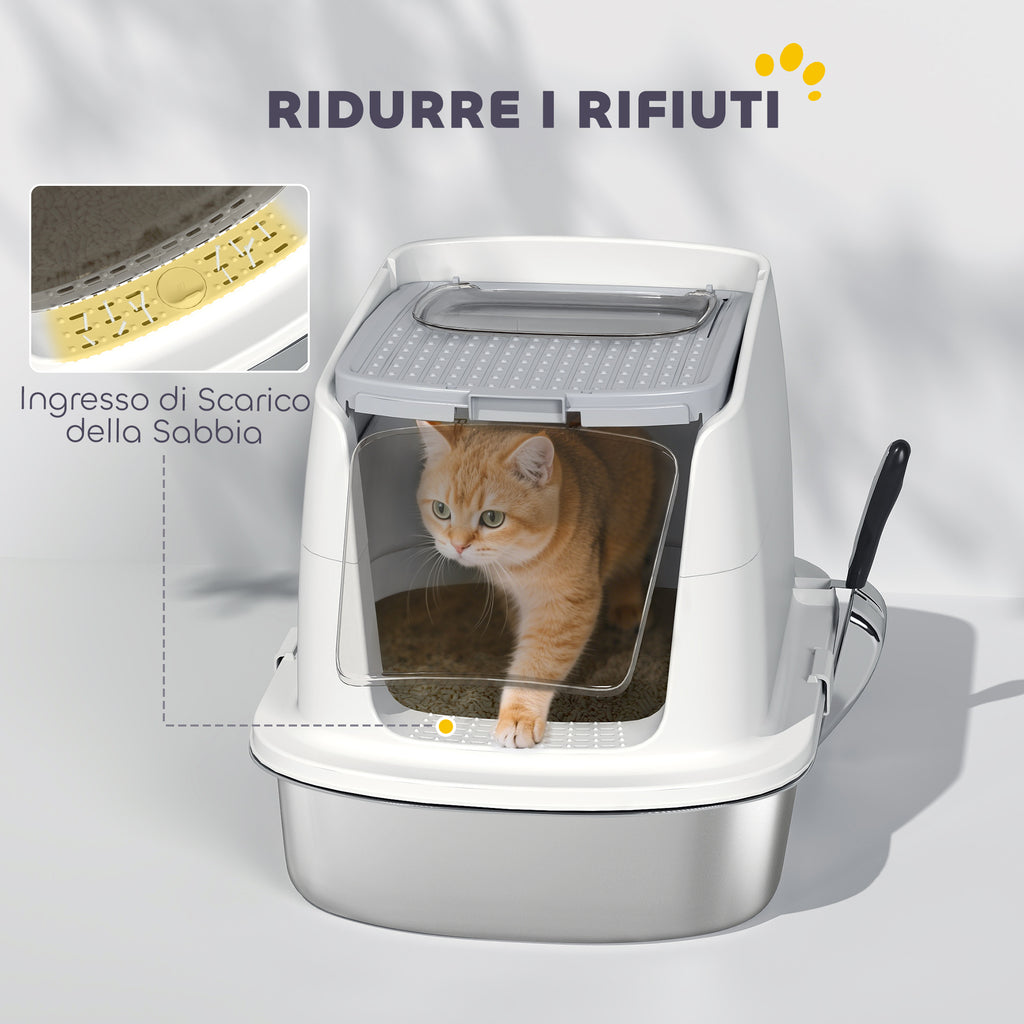 Lettiera Chiusa per Gatti a 2 Porte 52,4x41,3x39,8 cm Vaschetta in Acciaio Inox Bianco