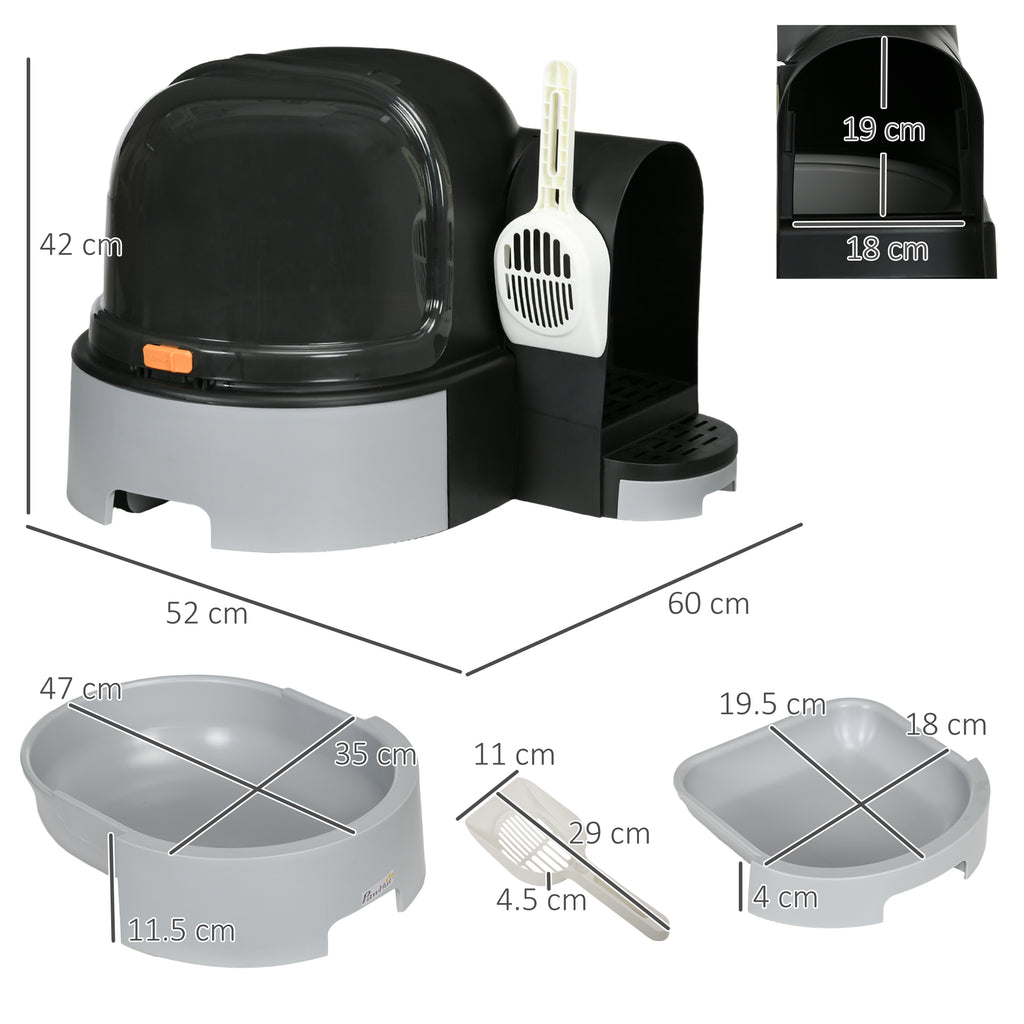 Lettiera per Gatti Chiusa con Coperchio Vassoio Estraibile e Paletta 52x60x42 cm Grigio Scuro
