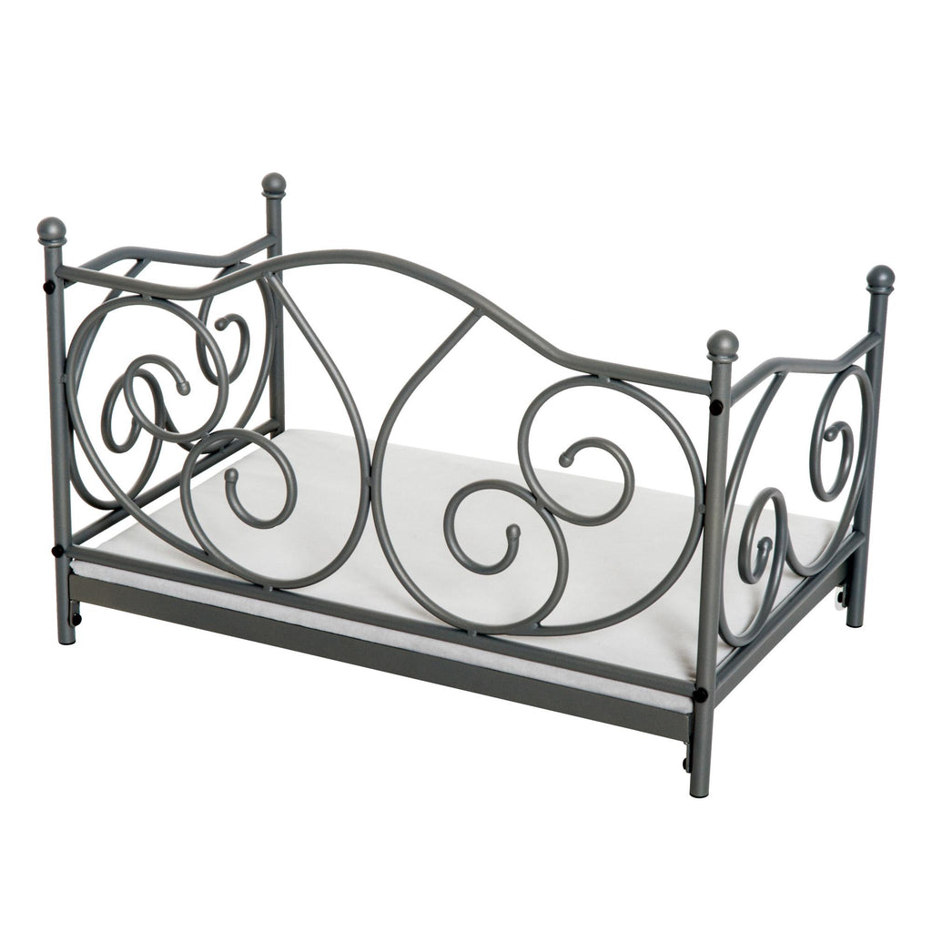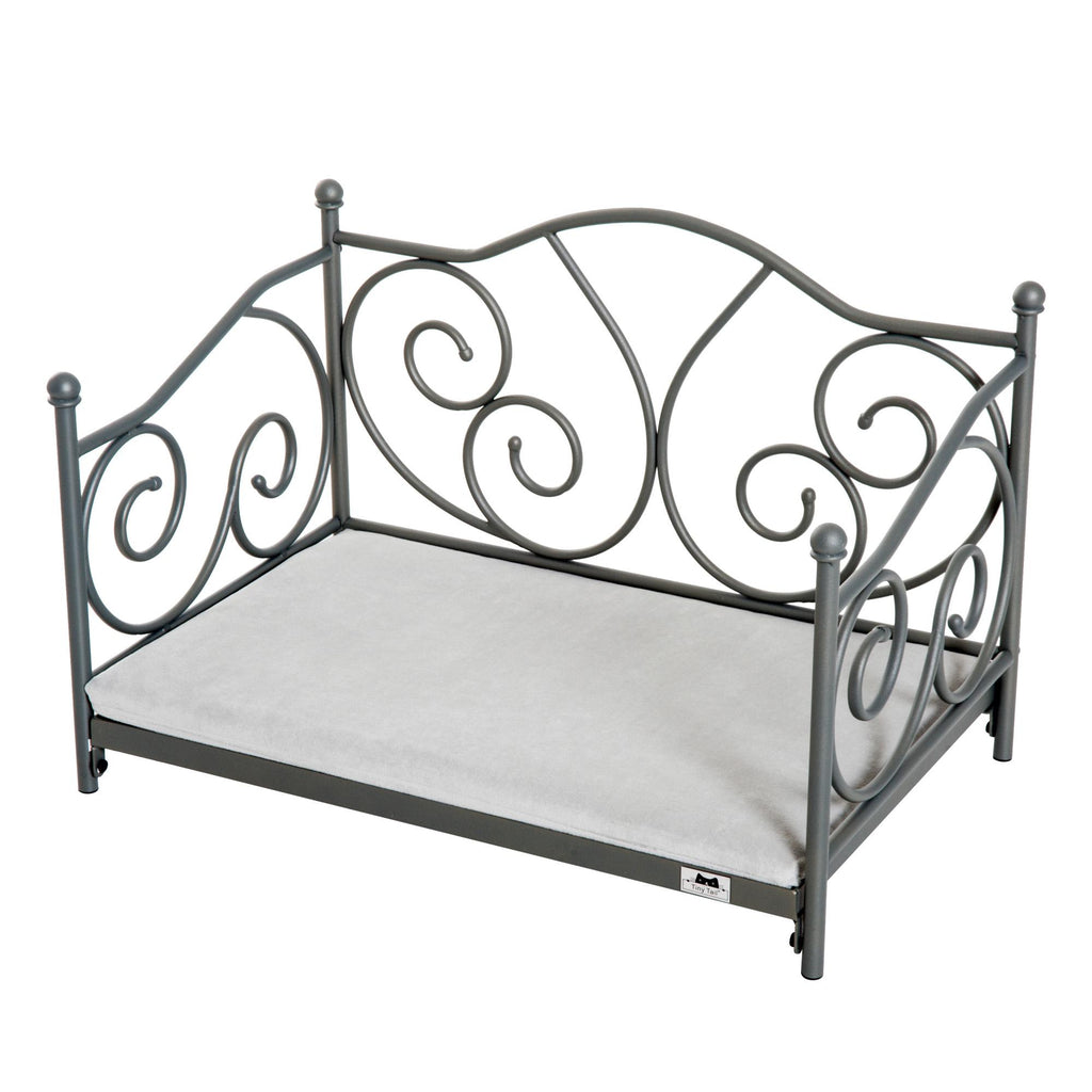 Kinderbett für Hunde und Katzen Metallstruktur mit grauem Kissen 65x42x42 cm