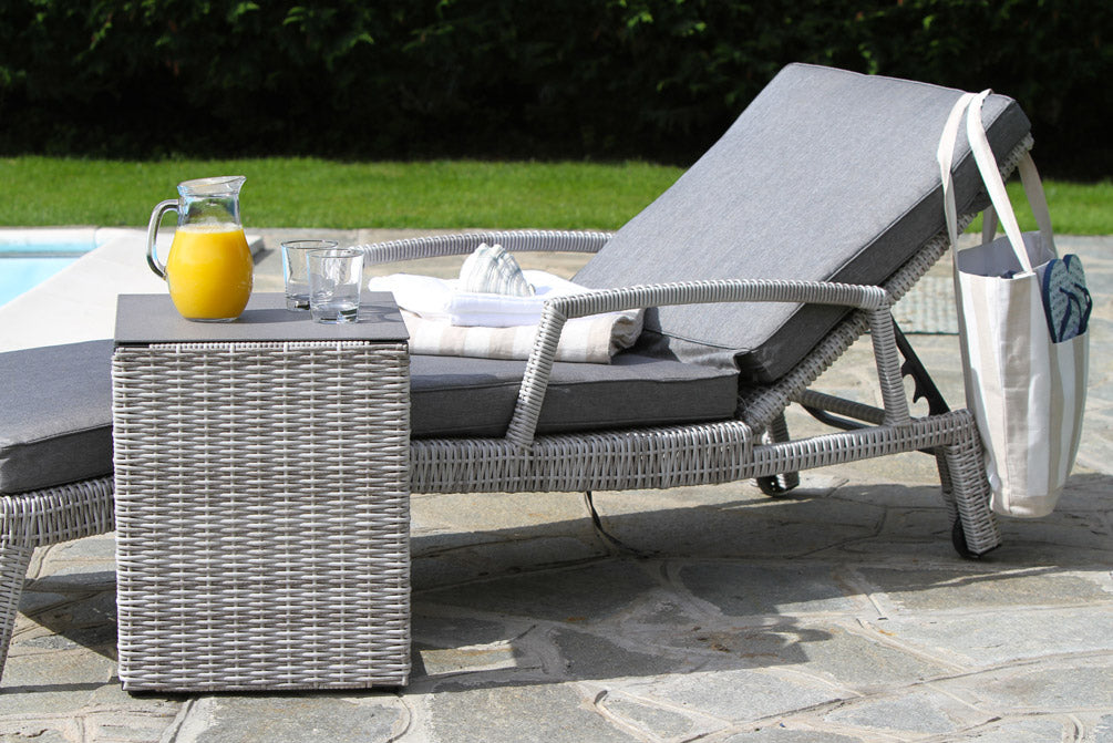 Gartenliege aus Polyrattan mit verstellbarer Rückenlehne in 3 Positionen Salem Grey cm 198x63H27/77