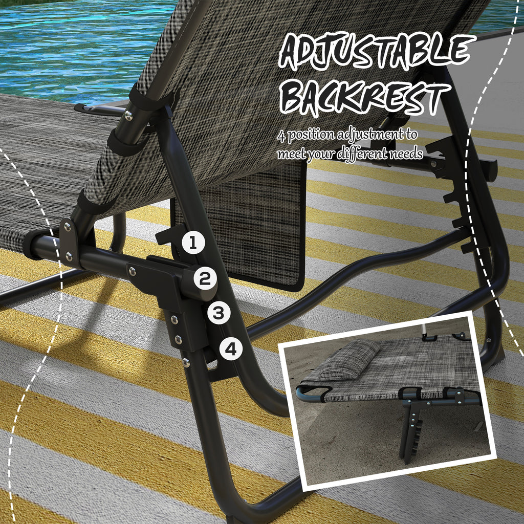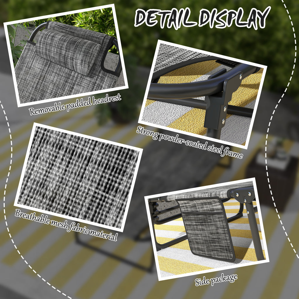 Lettino da Giardino Pieghevole e Reclinabile con Tasca Laterale 68x189x30 cm Nero e Grigio