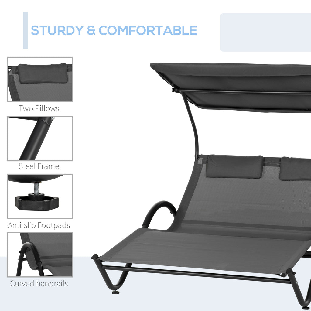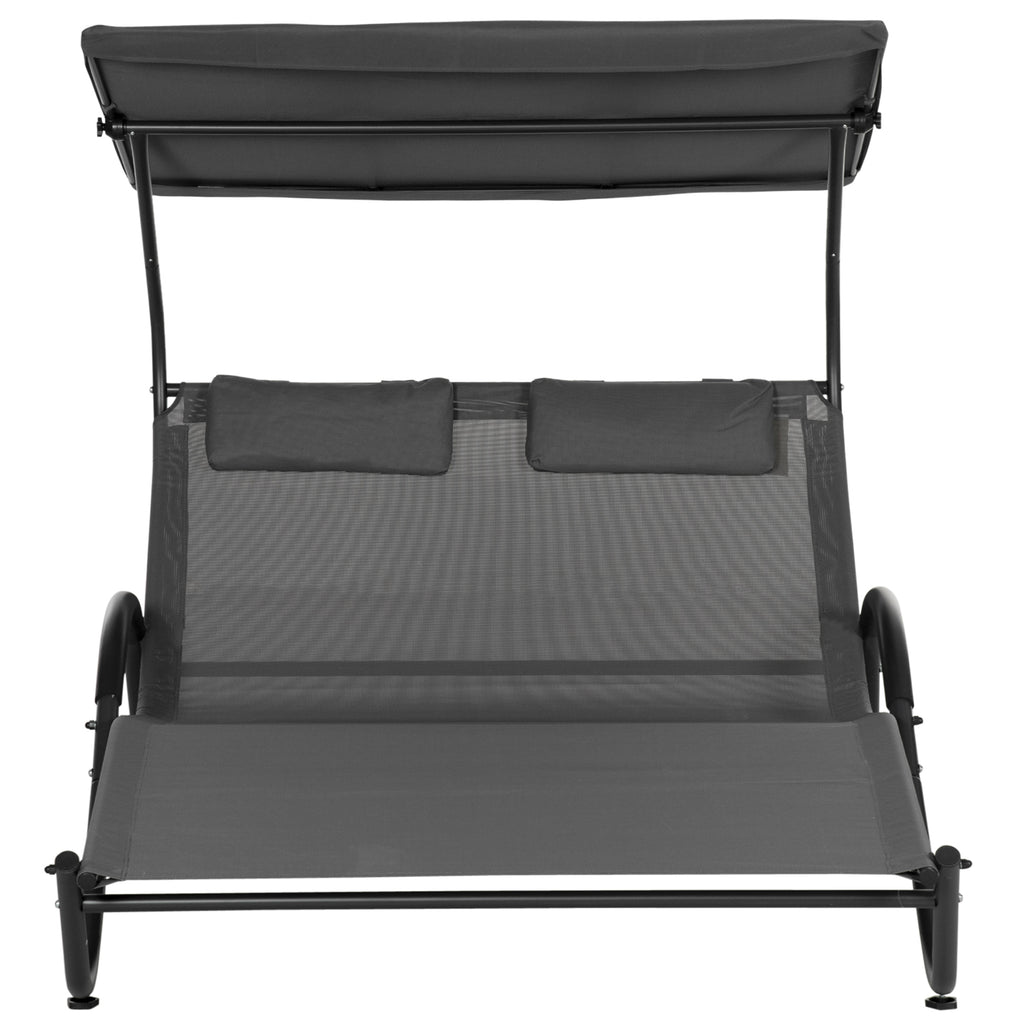 Lettino Prendisole 2 Posti da Giardino 200x137x138 cm con Tetto Parasole in Acciaio Grigio