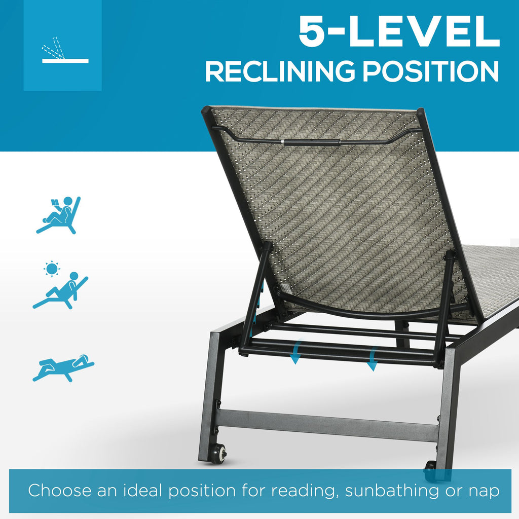 Lettino Prendisole da Giardino 162x60x90 cm in Rattan e Alluminio Nero e Grigio