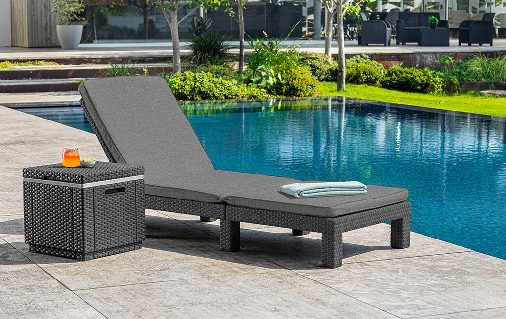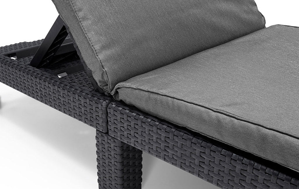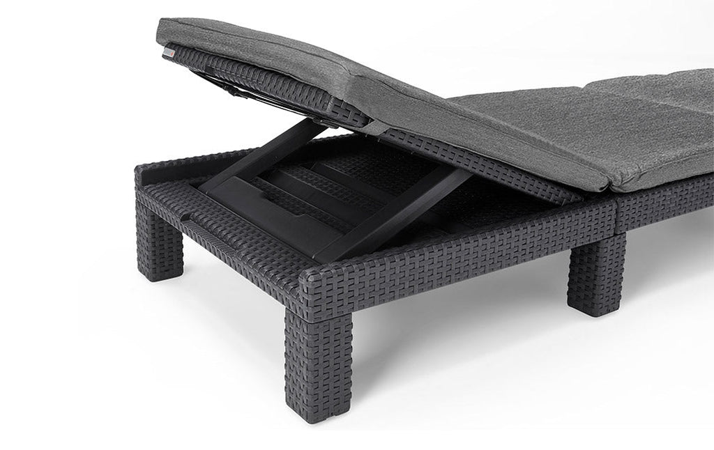 Genießen Sie angenehme Momente der Entspannung mit der Daytona Sonnenliege. Ausgestattet mit Kissen und verstellbarer Rückenlehne in 4 verschiedenen Positionen. Hergestellt aus strapazierfähigem, wetterbeständigem Harz. Es erfordert keine Wartung.