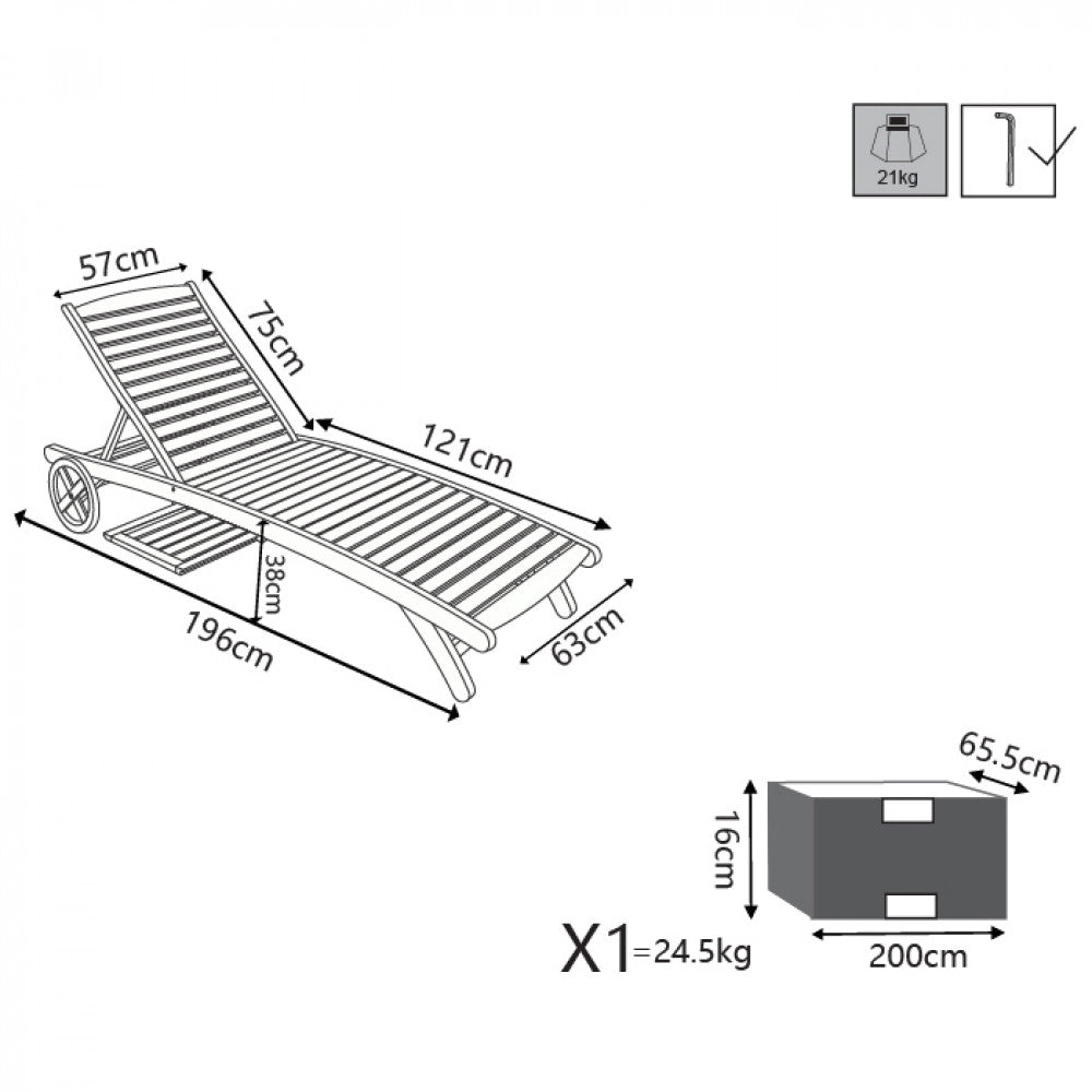 Garten-Sonnenliege mit Rollen 197 x 63 x 37/100 h cm in Brown Wood