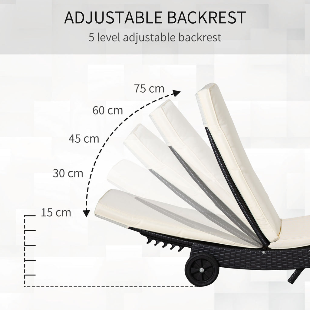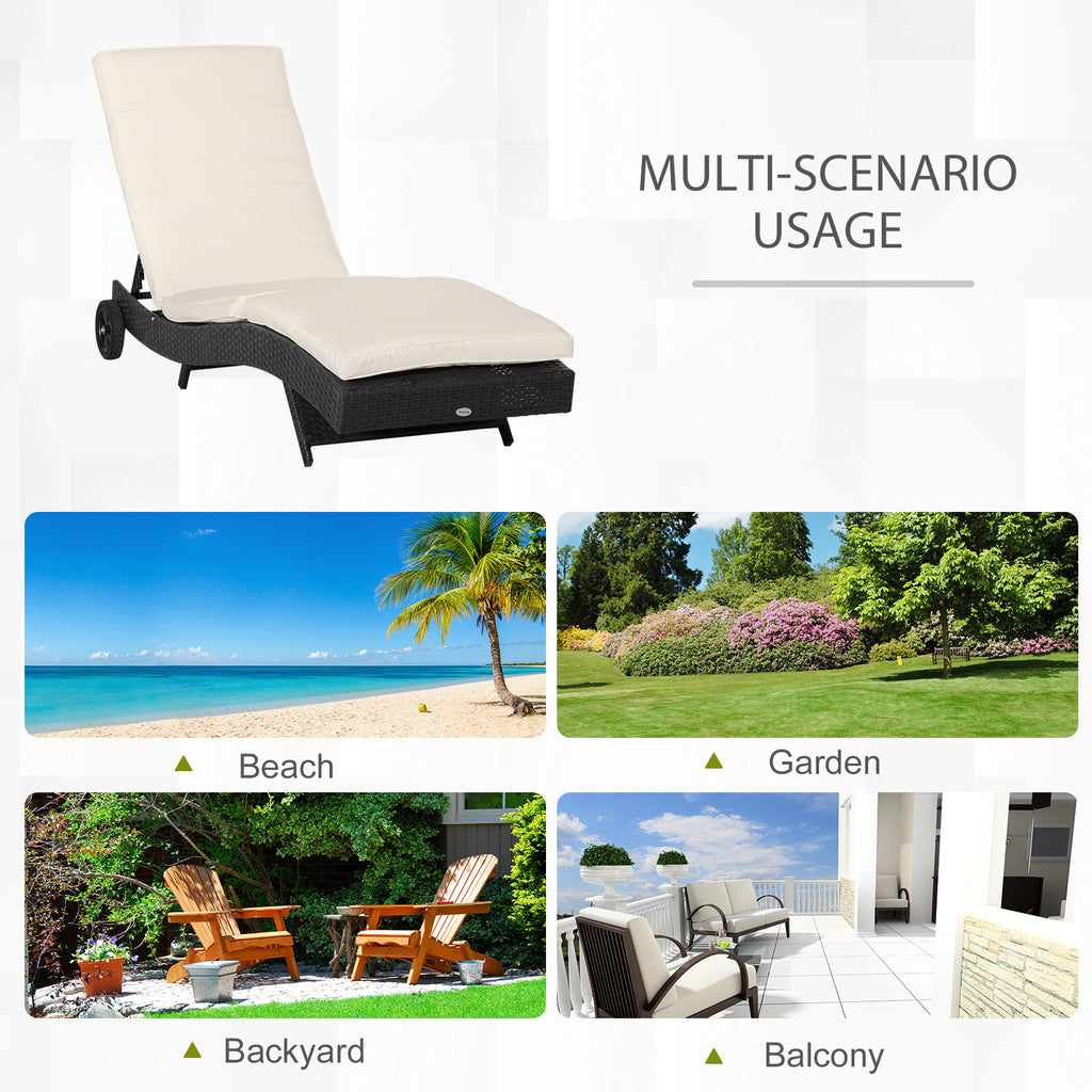 Lettino Prendisole da Giardino con Schienale Regolabile e Cuscino 207x70x70 cm in Rattan PE Nero