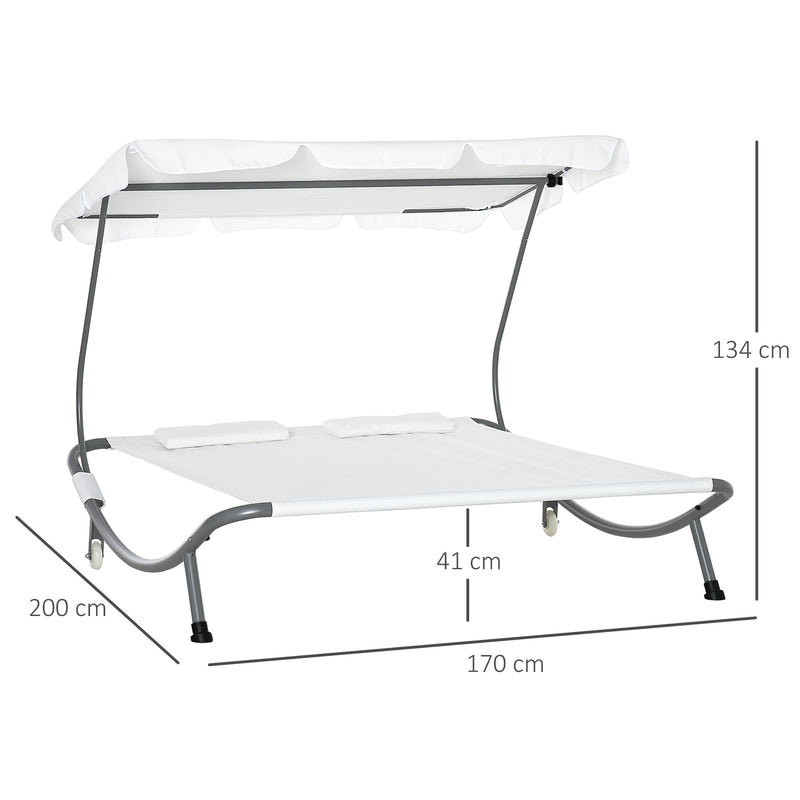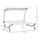 Doppel-Sonnenliege aus Stahl mit cremefarbenem, verstellbarem Baldachin