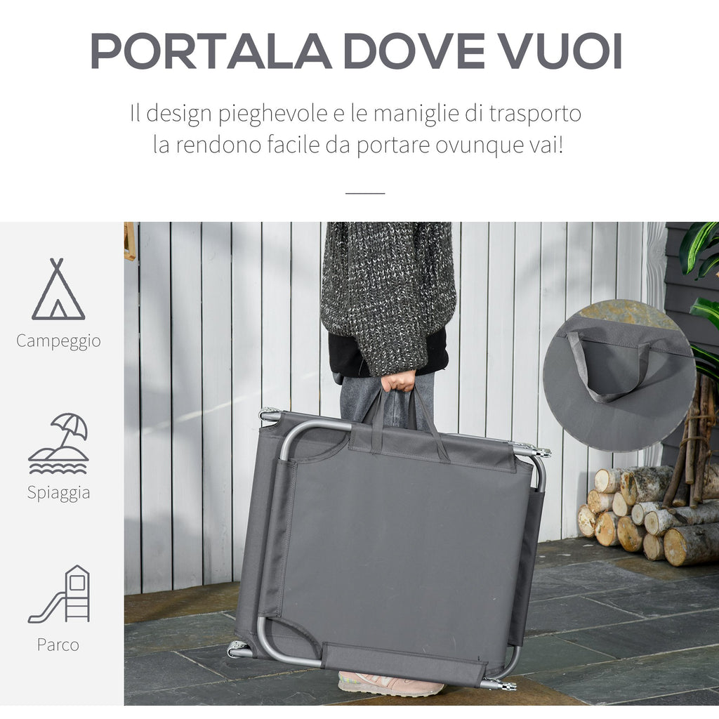 Klappbare Garten-Sonnenliege 180 x 55 x 24 cm aus Metall und grauem Oxford-Stoff