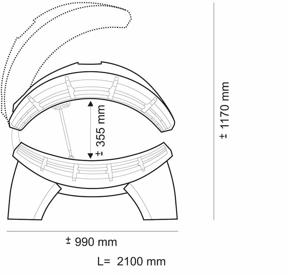 2100 mm x 990 mm x 1180 mm