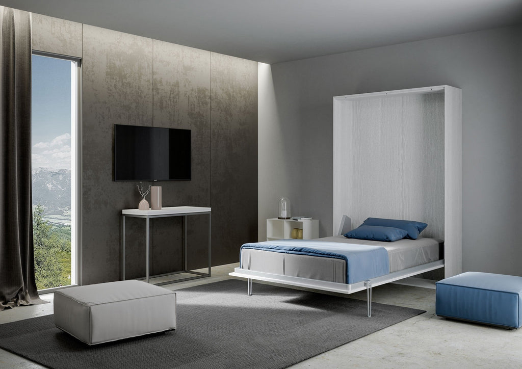 Letto 1 Piazza e Mezzo a Scomparsa Salvaspazio Kentaro H210 cm Bianco