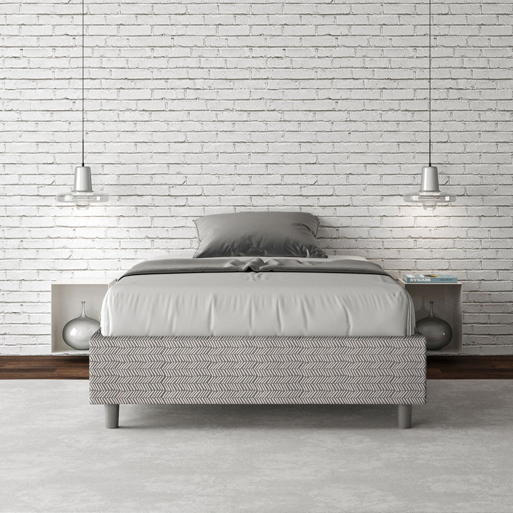 Letto una piazza e mezza 120x190 sommier Azelia con Letto imbottito, rivestimento in Microfibra sfoderabile, particolarmente versatile e facilmente abbinabile a qualsiasi stile di arredamento. Il letto una piazza e mezza 120x190 sommier Azelia è caratterizzato da uno stile semplice e lineare che si accentua per la mancanza della testiera. Un letto che darà un tocco di eleganza alla tua zona notte, senza passare inosservato, grazie alle caratteristiche distintive del suo rivestimento in Microfibra sfoderabile. Letto fornito con rete a doghe, predisposto per materasso da 120x190 cm