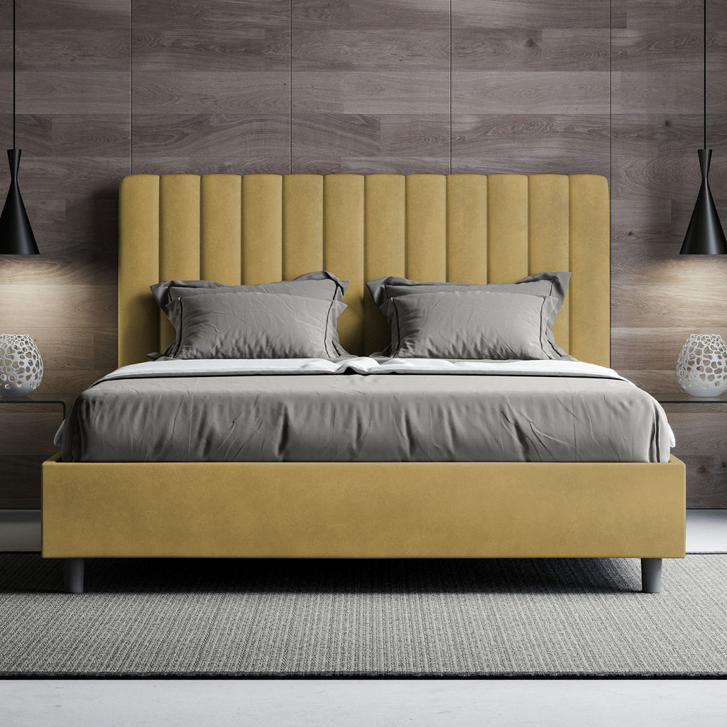 Letto 1 Piazza E Mezzo Imbottito in Microfibra Agueda Ocra Varie Misure