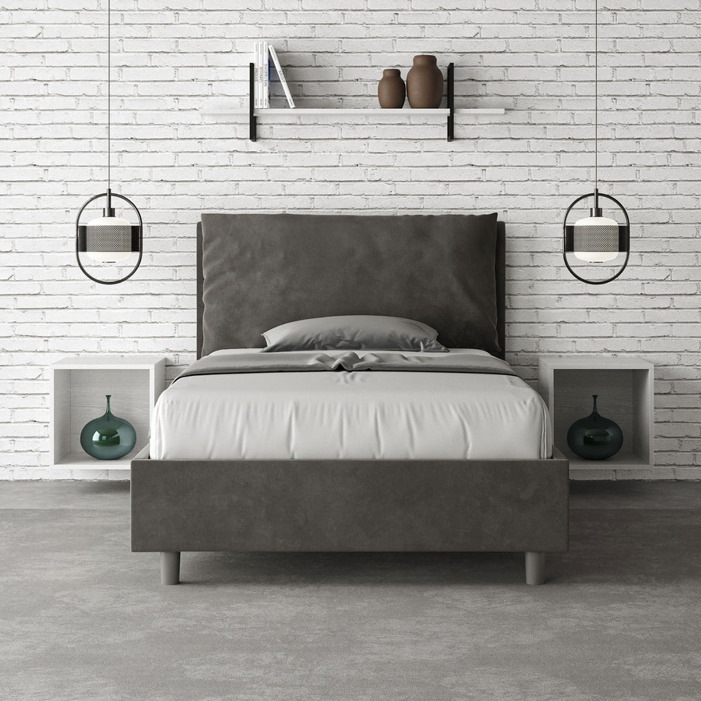 Letto 1 Piazza E Mezzo Imbottito in Microfibra Antea Large Grigio Varie Misure