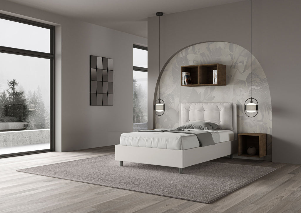 Letto 1 Piazza E Mezzo Imbottito in Similpelle Annalisa Large Bianco Varie Misure