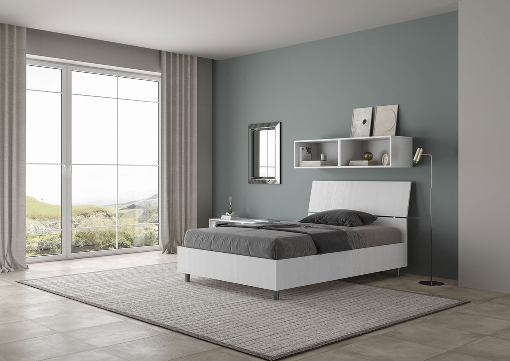 Letto 1 Piazza e Mezzo 120x200 cm con Rete e Contenitore Testata Inclinata Demas Bianco Frassino
