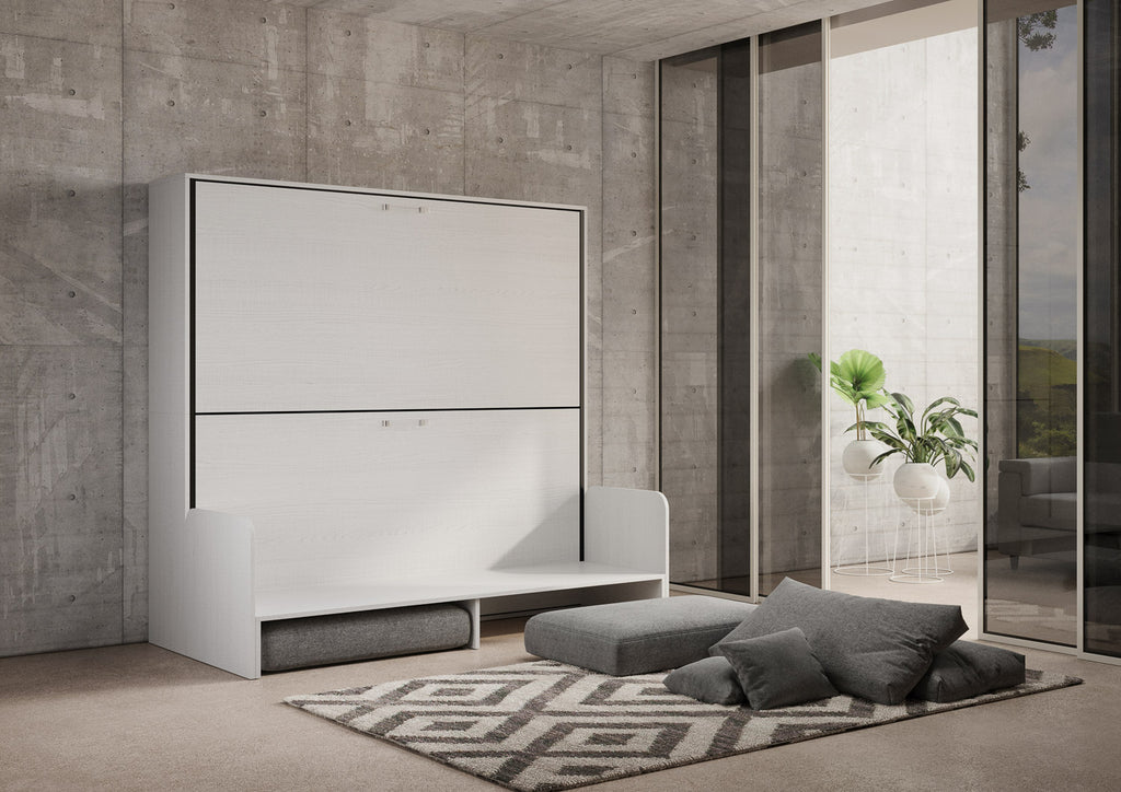 Letto Doppio A Scomparsa Kando Con Divano Con Materassi Bianco Frassino e Grigio