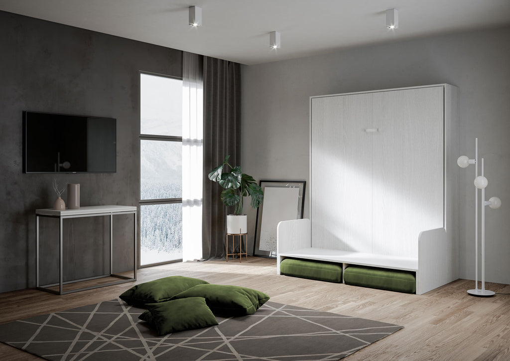 Letto Matrimoniale A Scomparsa 160 Kentaro Con Divano Bianco Frassino e Verde