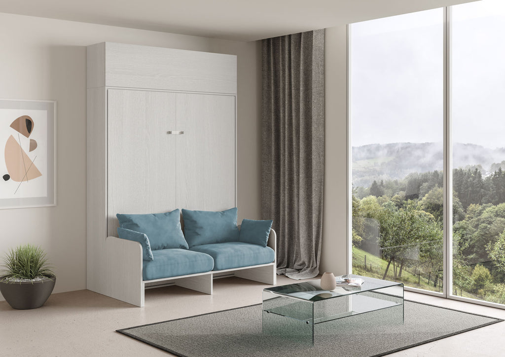 Letto Matrimoniale A Scomparsa 160 Kentaro Con Divano E Pensile Bianco Frassino e Azzurro